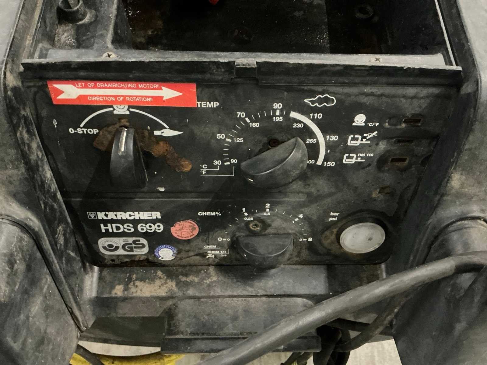 Merk: Karcher Type: HDS890 Maximale werkdruk: 180bar Temperatuurbereik max.: 155°c Dieselgestookt: true Mobiel: true Vermogen: 5kW Aansluiting: 400V