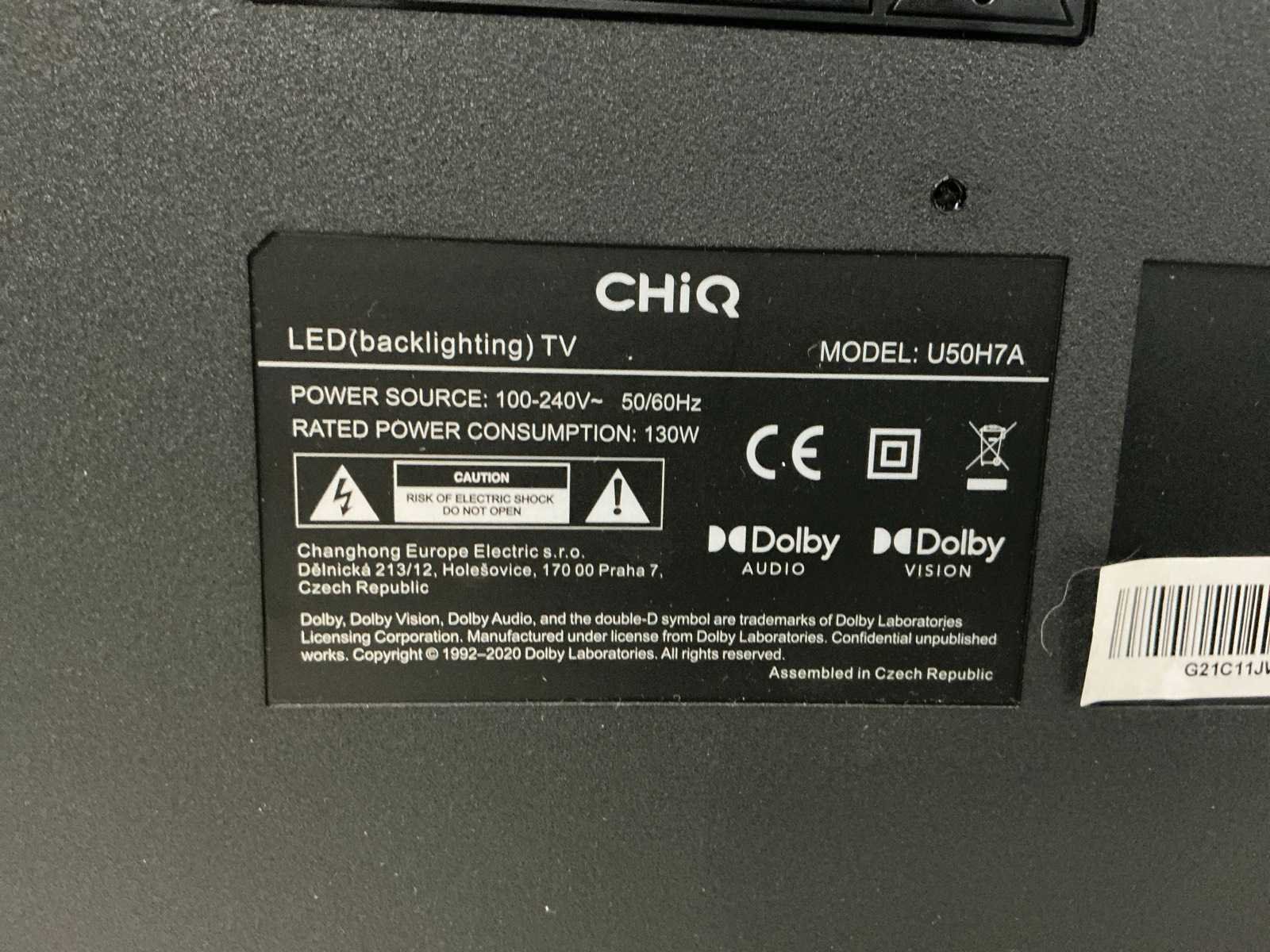 Merk: CHiQ Model: U50H7A Beelddiagonaal: 50'' Wifi: true Bluetooth: true HDR: true Smart TV: true