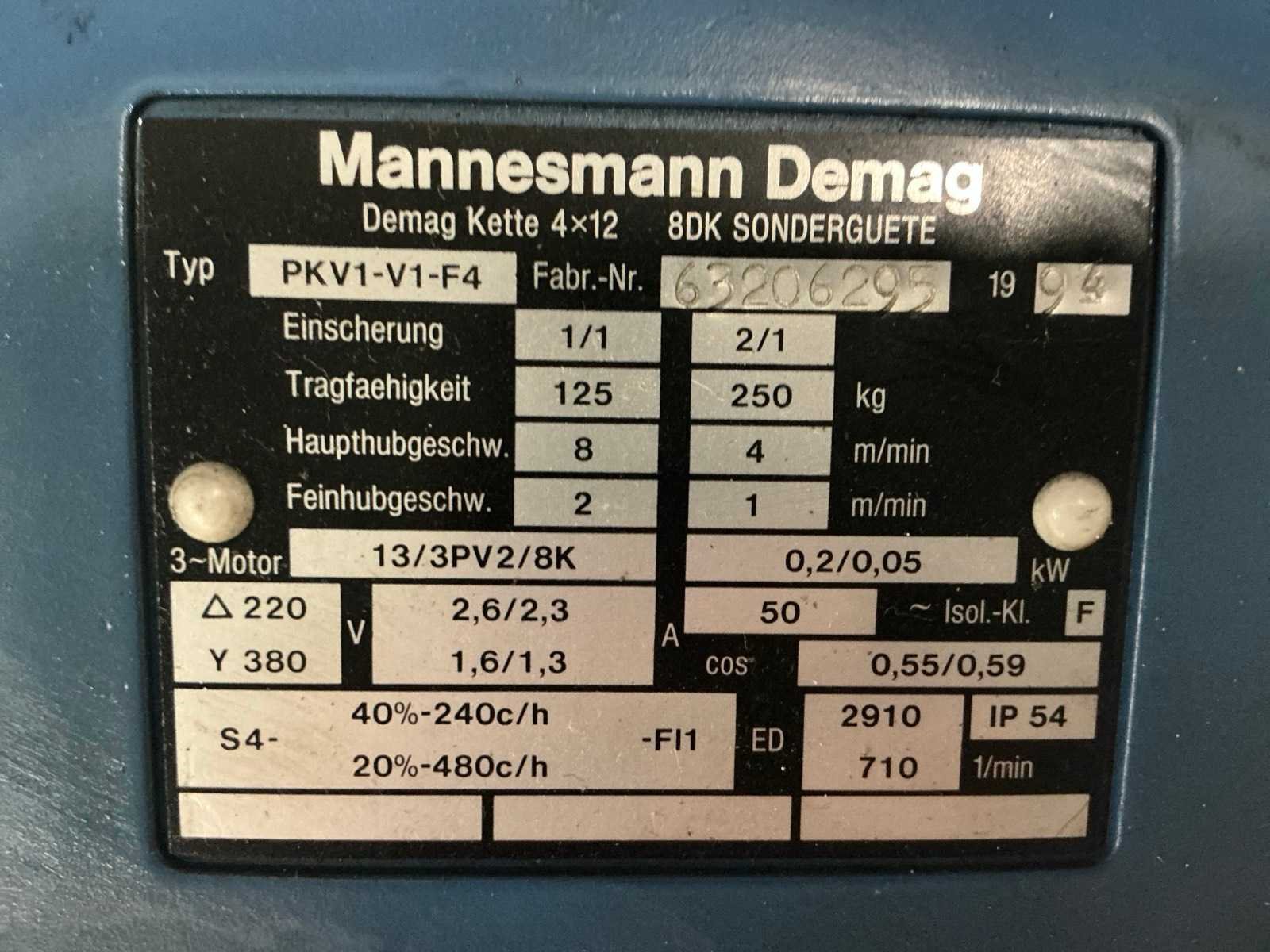 Merk: Demag Type: Pkv1-v1-f4 Capaciteit.: 250kg Afstandsbediening: true