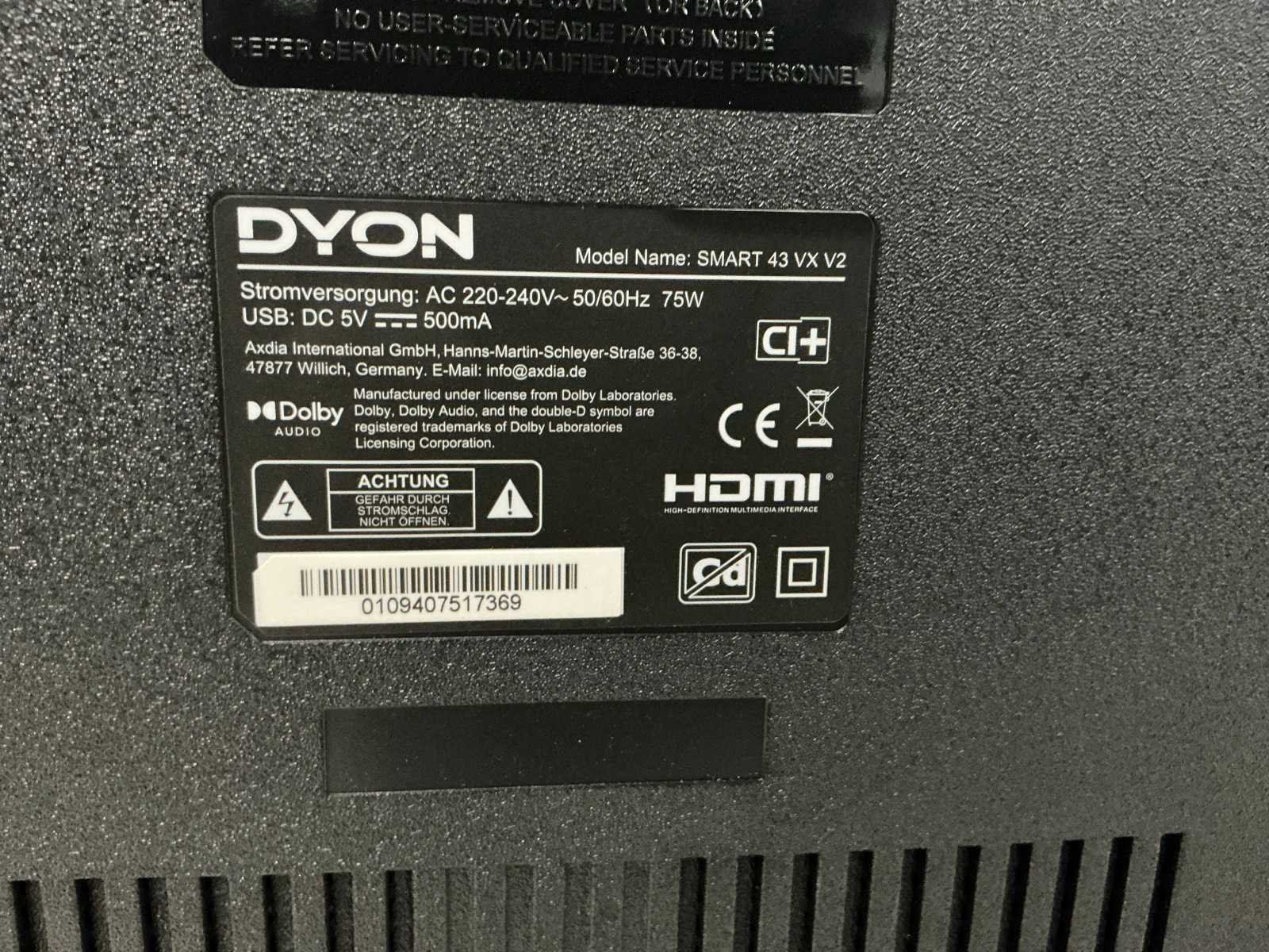 Merk: Dyon Model: Smart vx v2 Beelddiagonaal: 43'' Wifi: true Bluetooth: true Smart TV: true