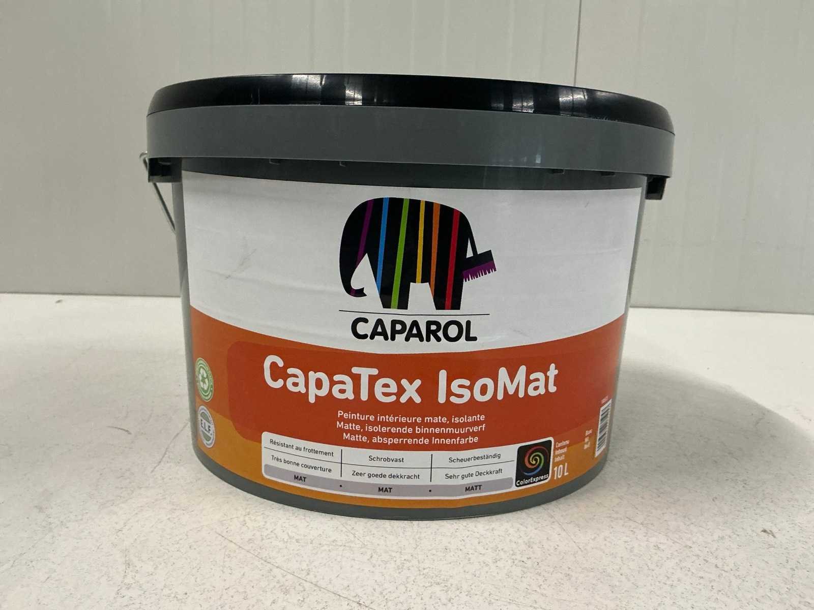 Caparol CapaTex IsoMat iseen watergedragen, isolerende binnenmuurverf die doorslag van vlekken zoals nicotine en roet voorkomt. Merk: Caparol Type: Capatex isomat Muur: true Inhoud: 10000ml Mat: true