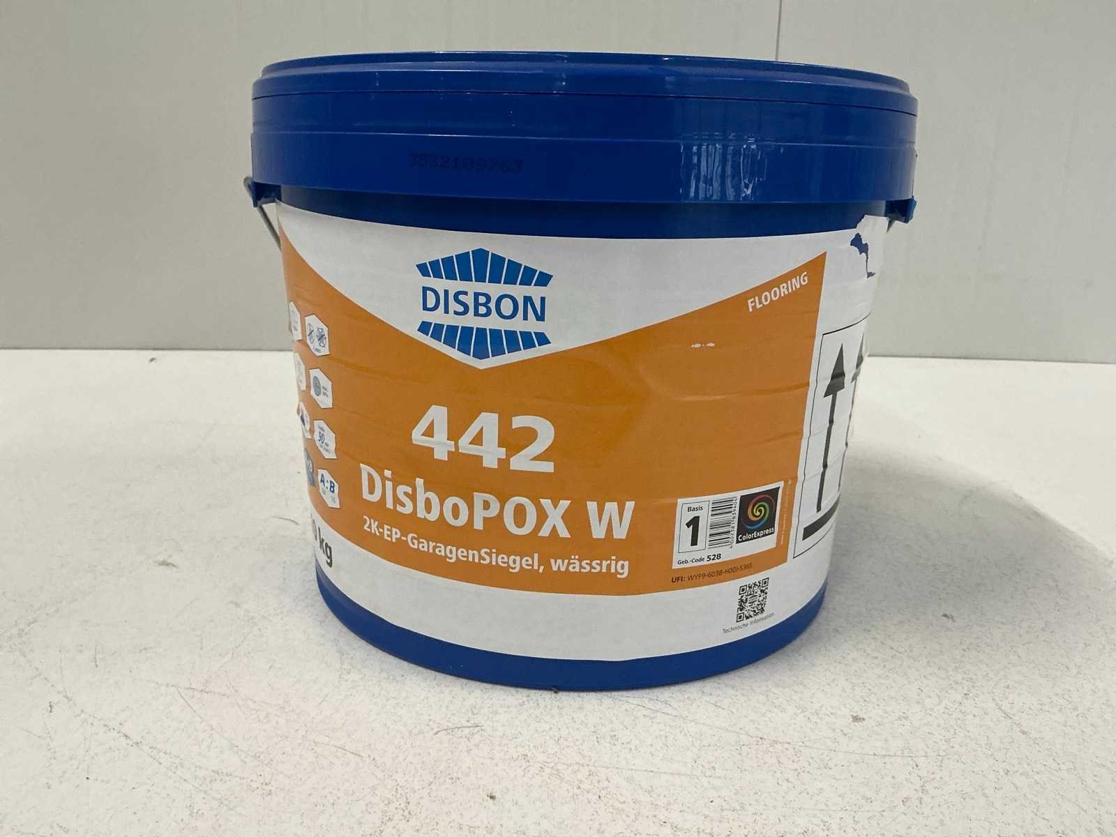 De Disbon 442 DisboPOX W 2K-EP-Garagensiegel is een waterverdunbare, carbonvezelversterkte 2-componenten epoxyharsvloercoating voor gebruik binnenshuis, ideaal voor garages, magazijnen en kelders. Het staat bekend om zijn hoge slagvastheid en weerstand tegen chemicaliën Merk: Caparol Type: Disbopox 442W Inhoud: 10000ml