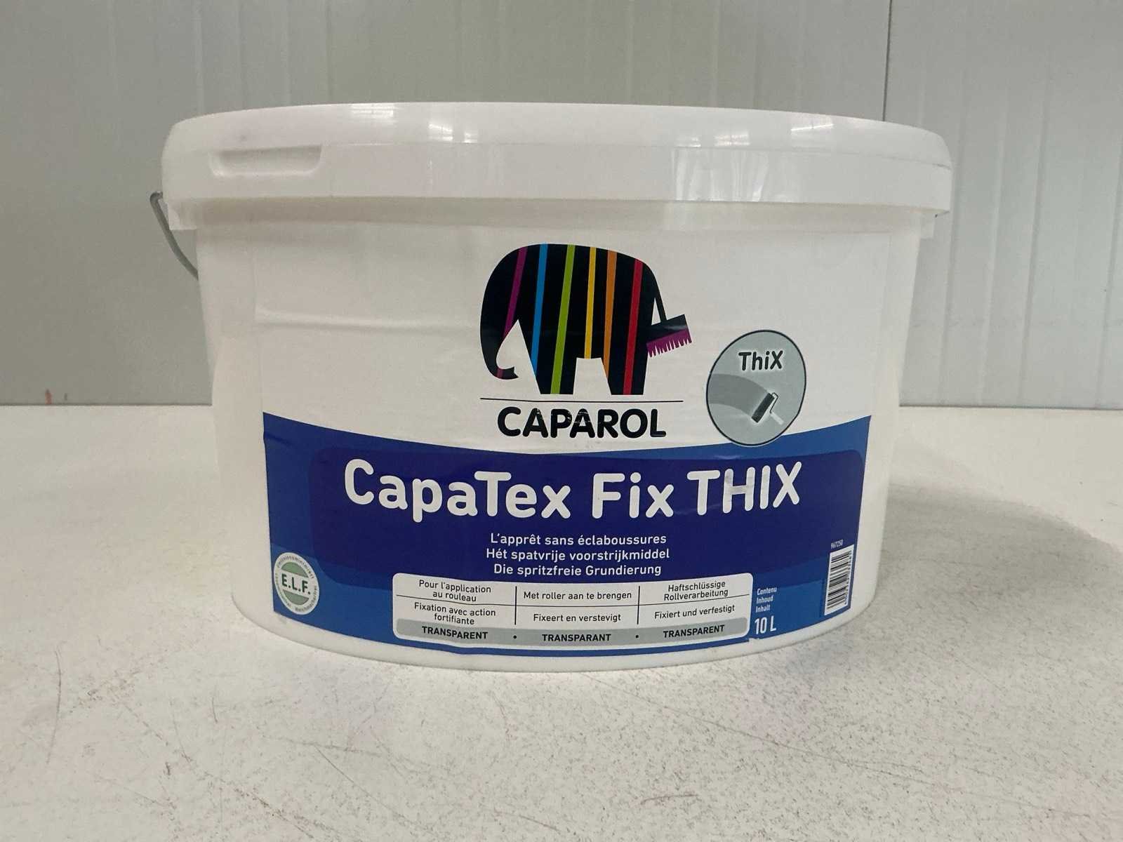Caparol CapaTex Fix THIX is een transparant, waterverdunbaar voorstrijkmiddel op basis van acrylaat, speciaal ontwikkeld voor het nivelleren en verstevigen van sterk of ongelijkmatig zuigende, vaste en poreuze ondergronden binnenshuis en buitenshuis Merk: Caparol Type: Capatex Fix Thix