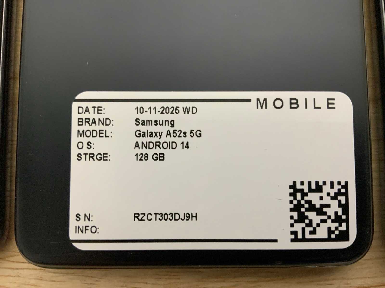 Merk: Samsung Type: Galaxy A52s 5G Wifi: true Bluetooth: true Dual SIM: true Frontcamera: true Camera: true Touchscreen: true Simlock vrij: true Opslagcapaciteit: 128GB Besturingssysteem: Android 14 Zonder oplader: true