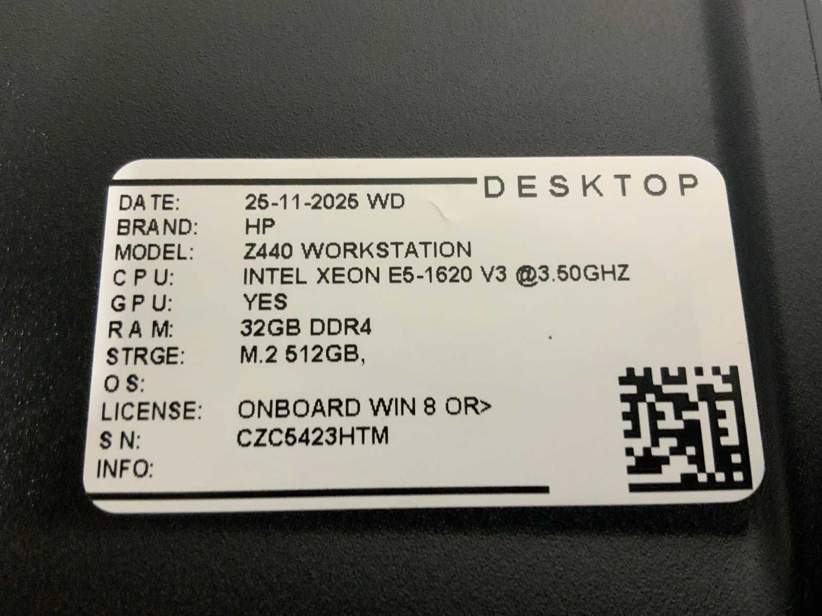 Merk: Hp Type: Z440 Workstation Processor type: Intel xeon E5-1620 v3 Processorsnelheid Ghz: 3,50 Besturingssysteem: Nvt Type datadrager: M-sata RAM Geheugen: 32GB RAM Geheugen Type: Ddr4 Opslagcapaciteit: 512GB Type videokaart: Ja Displaypoort: 1 DVI: 1 Ethernet: 1 USB poorten: 10 Zonder voedingskabel: true