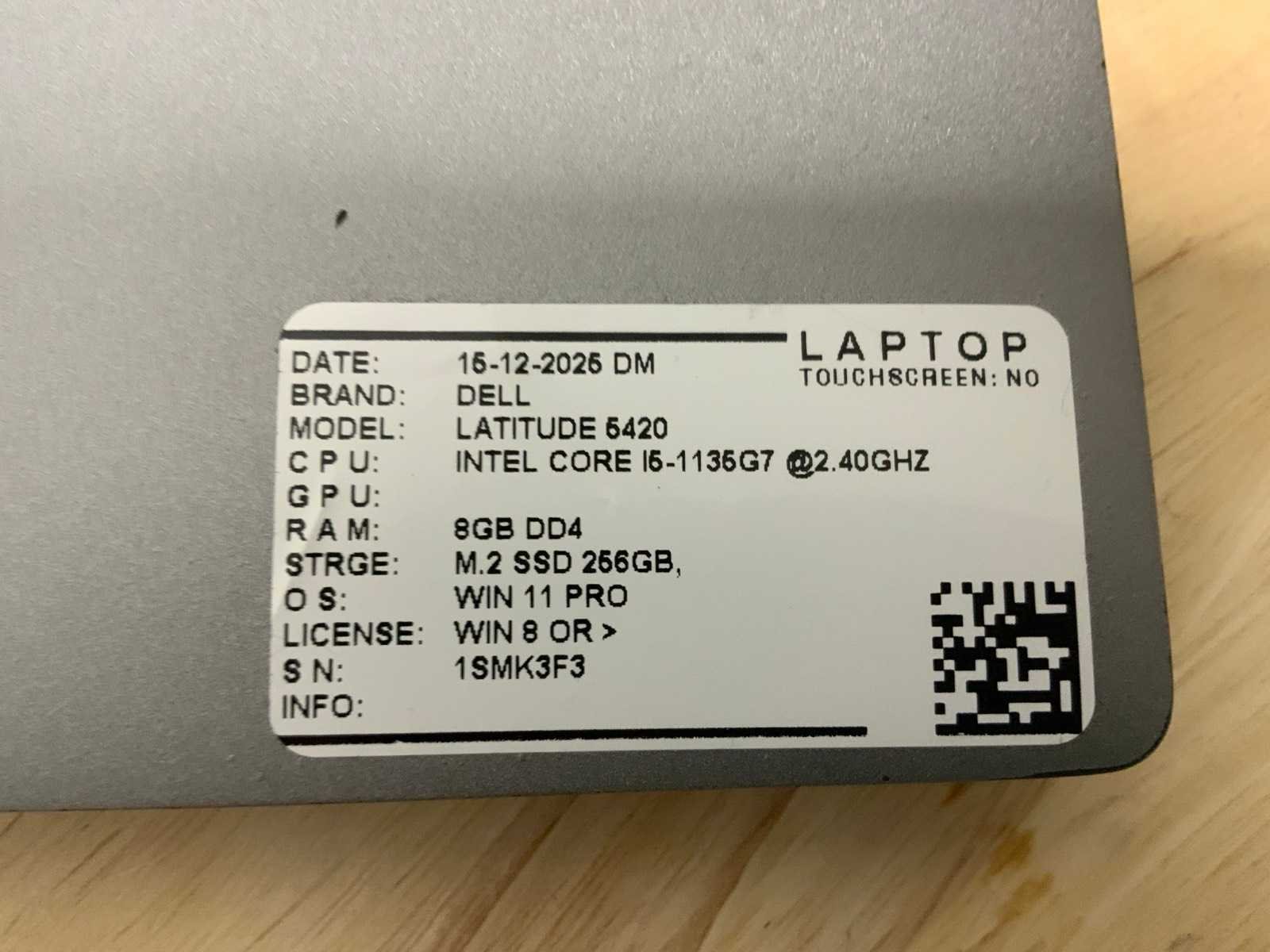 Merk: Dell Type: Latitude 5420 Processor type: Intel core i5-1135G7 Processorsnelheid Ghz: 2,4 RAM Geheugen: 8GB RAM Geheugen Type: DDR4 Totale opslagcapaciteit: 256GB Type datadrager: M.2 SSD Aantal datadragers: 1 Besturingssysteem: Windows 11 Pro Licentie: Onboard Zonder adapter: true Wifi: true Bluetooth: true Ethernet: 1 USB-Type: USB-A & USB-C USB poorten: 4 Card reader: true Koptelefoon aansluiting: true Webcam: true Toetsenbord: QWERTY