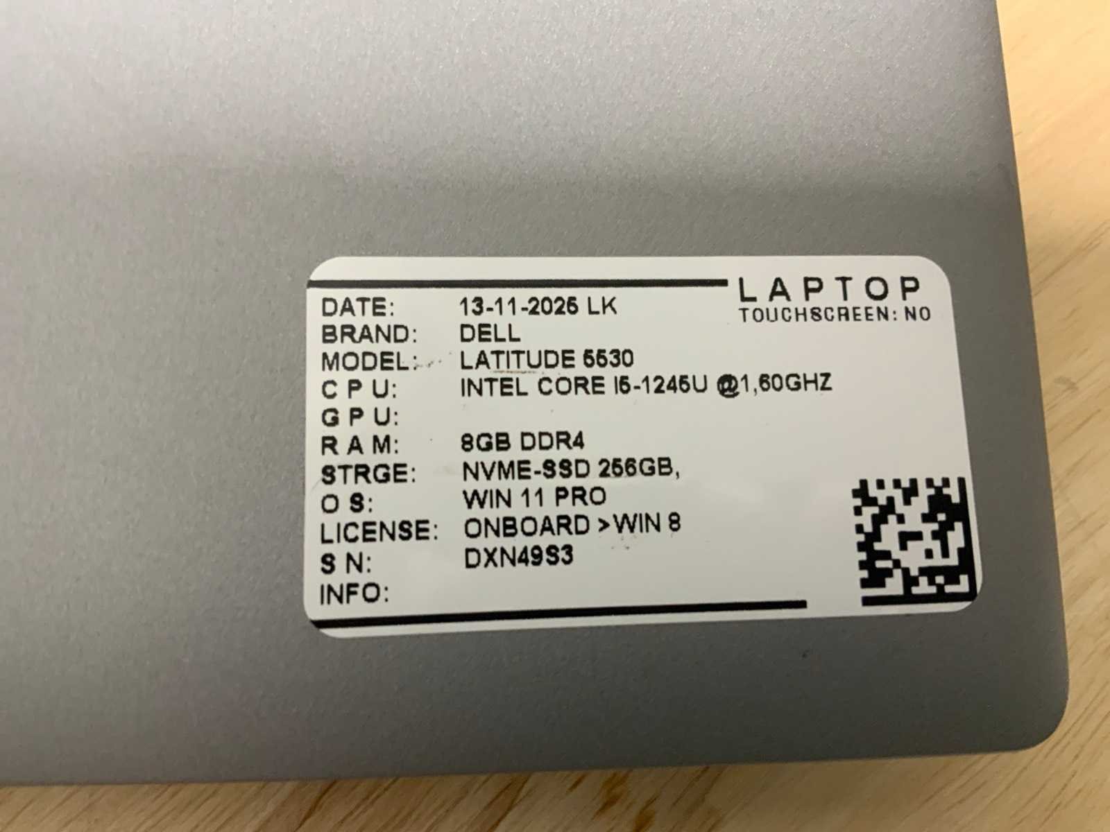 Merk: Dell Type: Latitude 5530 Processor type: Intel core i5-1245U Processorsnelheid Ghz: 1,60 RAM Geheugen: 8GB RAM Geheugen Type: DDR4 Totale opslagcapaciteit: 256GB Type datadrager: M.2 SSD Aantal datadragers: 1 Besturingssysteem: Windows 11 Pro Licentie: Onboard Zonder adapter: true Wifi: true Bluetooth: true Ethernet: 1 USB-Type: USB-A & USB-C USB poorten: 4 Card reader: true Koptelefoon aansluiting: true Webcam: true Toetsenbord: QWERTY HDMI: 1