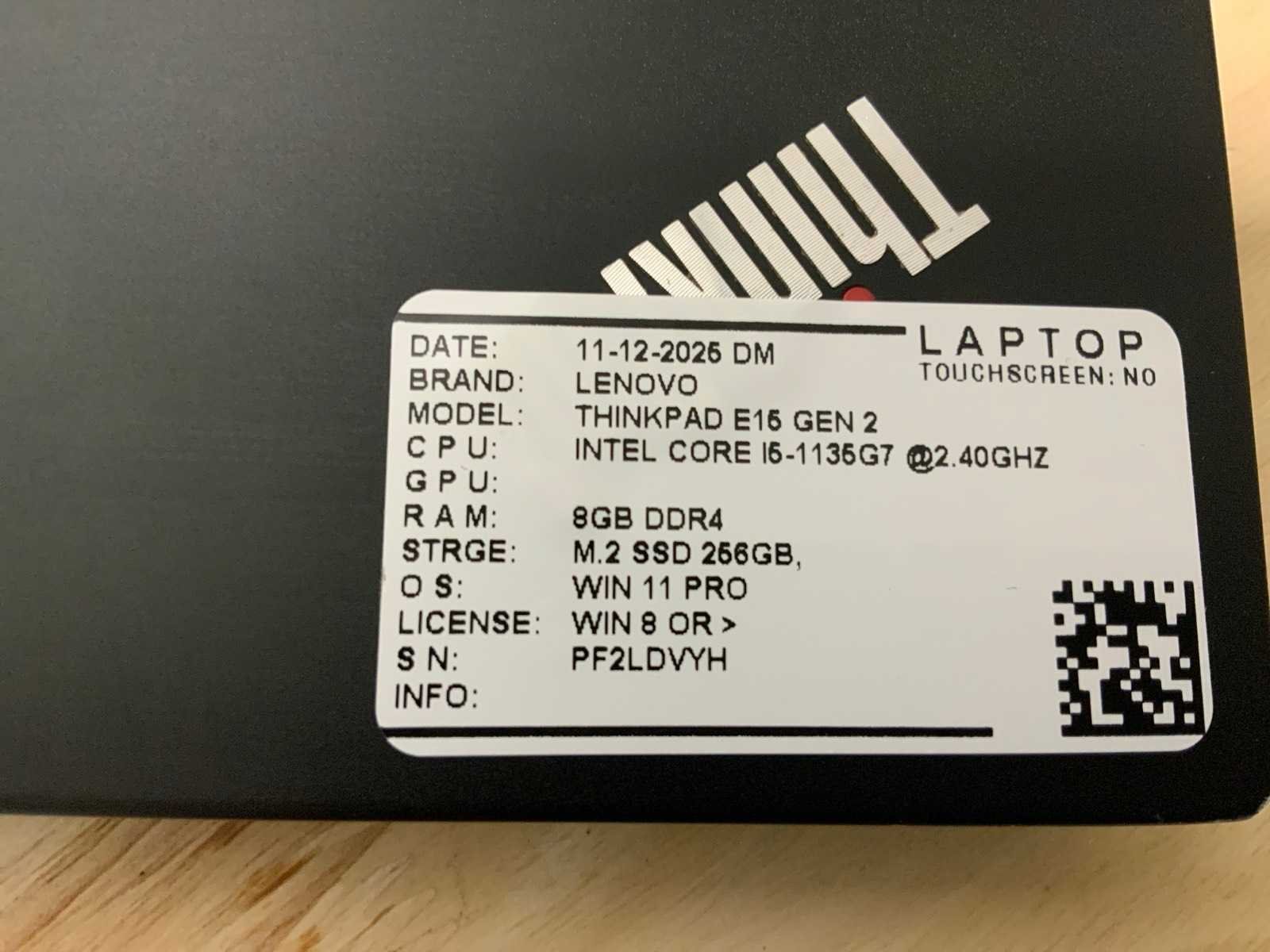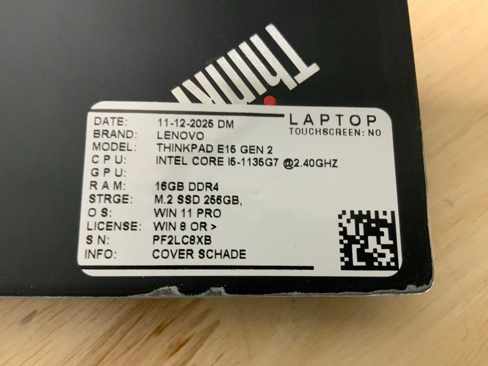 Merk: Lenovo Type: Thinkpad e15 gen2 Processor type: Intel core i5-1135G7 RAM Geheugen: 2.4GB RAM Geheugen Type: 16 Totale opslagcapaciteit: 256GB Type datadrager: M-sata Aantal datadragers: 1 Besturingssysteem: Windows 11 pro Licentie: Onboard Zonder adapter: true Wifi: true Bluetooth: true USB-Type: Usb-A/usb-C USB poorten: 3 Card reader: true Koptelefoon aansluiting: true Webcam: true Toetsenbord: Qwerty HDMI: 1