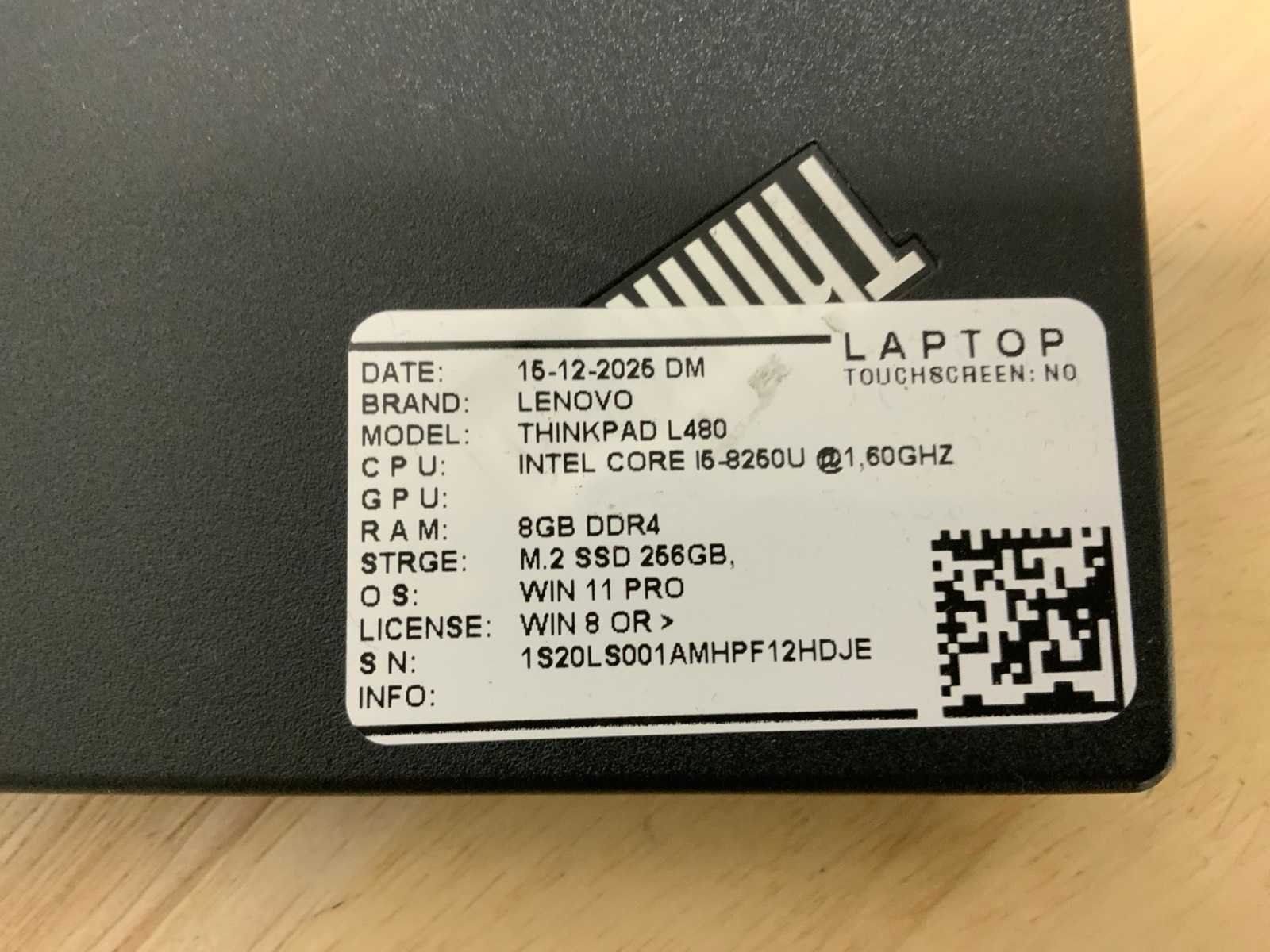 Merk: Lenovo Type: Thinkpad L480 Processor type: Intel core i5-8250U Processorsnelheid Ghz: 1,60 RAM Geheugen: 8GB RAM Geheugen Type: Ddr4 Totale opslagcapaciteit: 256GB Type datadrager: M-sata Aantal datadragers: 1 Besturingssysteem: Windows 11 pro Licentie: Onboard Zonder adapter: true Wifi: true Bluetooth: true USB-Type: Usb-A/usb-C USB poorten: 3 Card reader: true Koptelefoon aansluiting: true Webcam: true Toetsenbord: Qwerty HDMI: 1