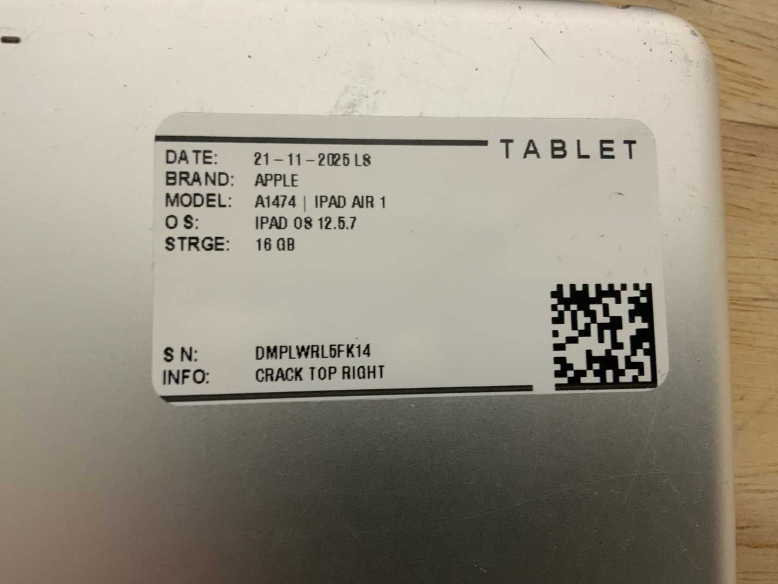 Merk: Apple Type: Ipad air2 & air Frontcamera: true Camera: true Integrated microphone: true Wifi: true Bluetooth: true Touchscreen: true Zonder oplader: true