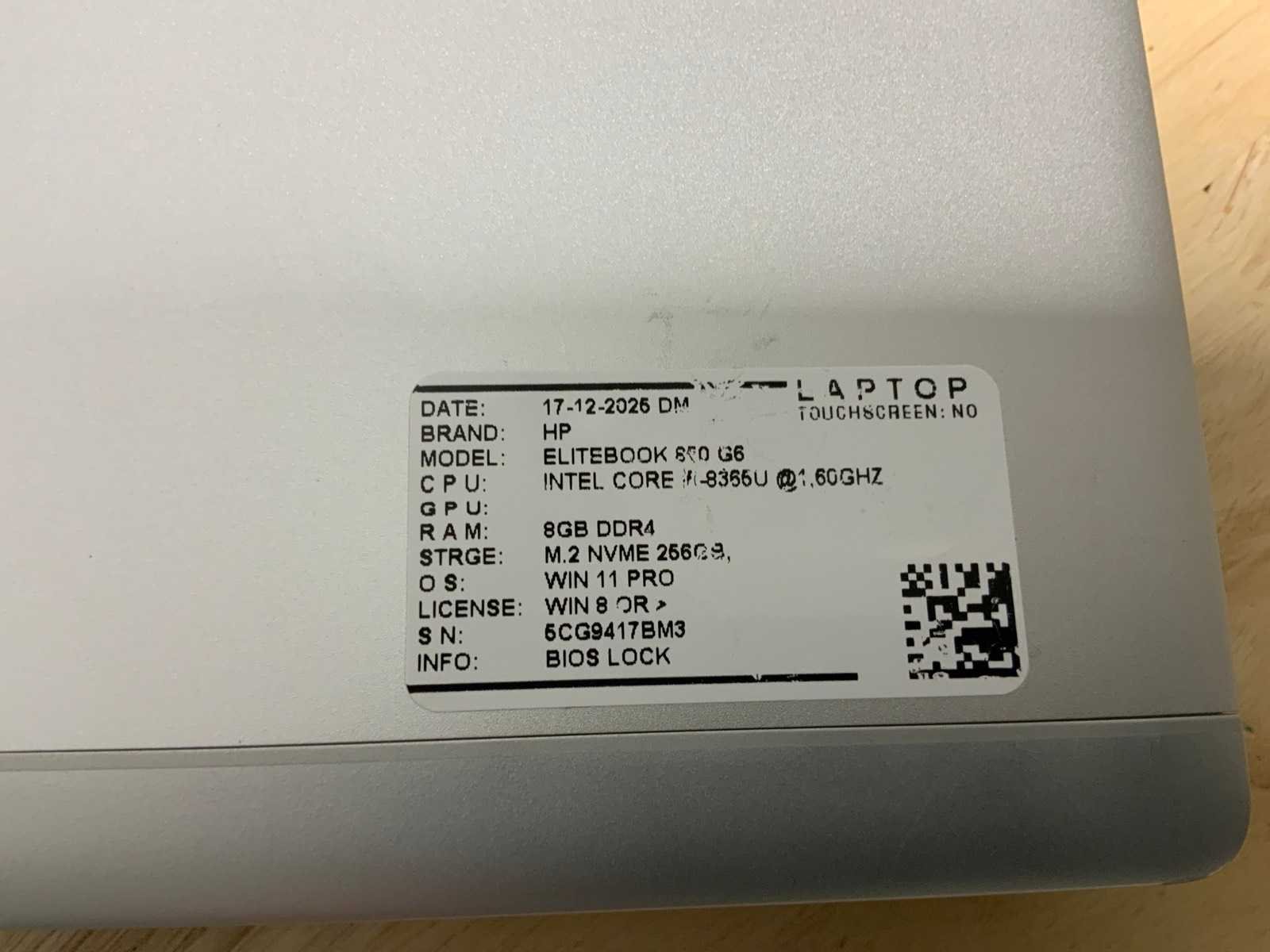 Merk: Hp Type: Elitebook 850 G6 Processor type: Intel core i5-8350U/i5-8365U Processorsnelheid Ghz: 1,60 RAM Geheugen Type: Ddr4 Totale opslagcapaciteit: 256GB Type datadrager: Nvme Aantal datadragers: 1 Besturingssysteem: Windows 11 pro Licentie: Onboard Zonder adapter: true Wifi: true Bluetooth: true Ethernet: 1 USB-Type: Usb-A/Usb-C USB poorten: 2 Card reader: true Koptelefoon aansluiting: true Webcam: true Toetsenbord: Qwerty HDMI: 1