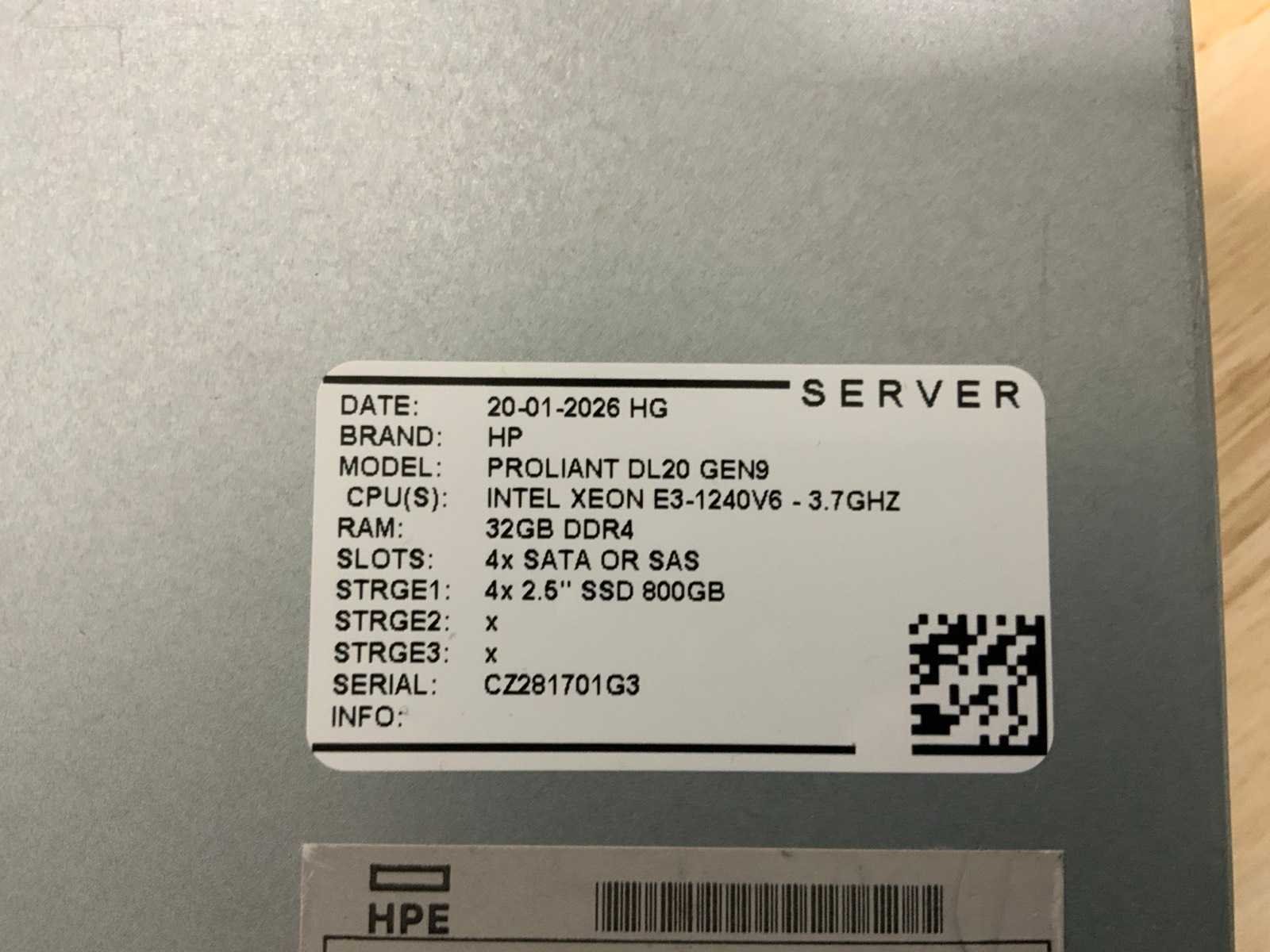 Getest; intel xeon e3-1240V6; 32gb ddr4; storage 4x 800gb ssd sas; Merk: Hp Type: Proliant DL20 gen 9