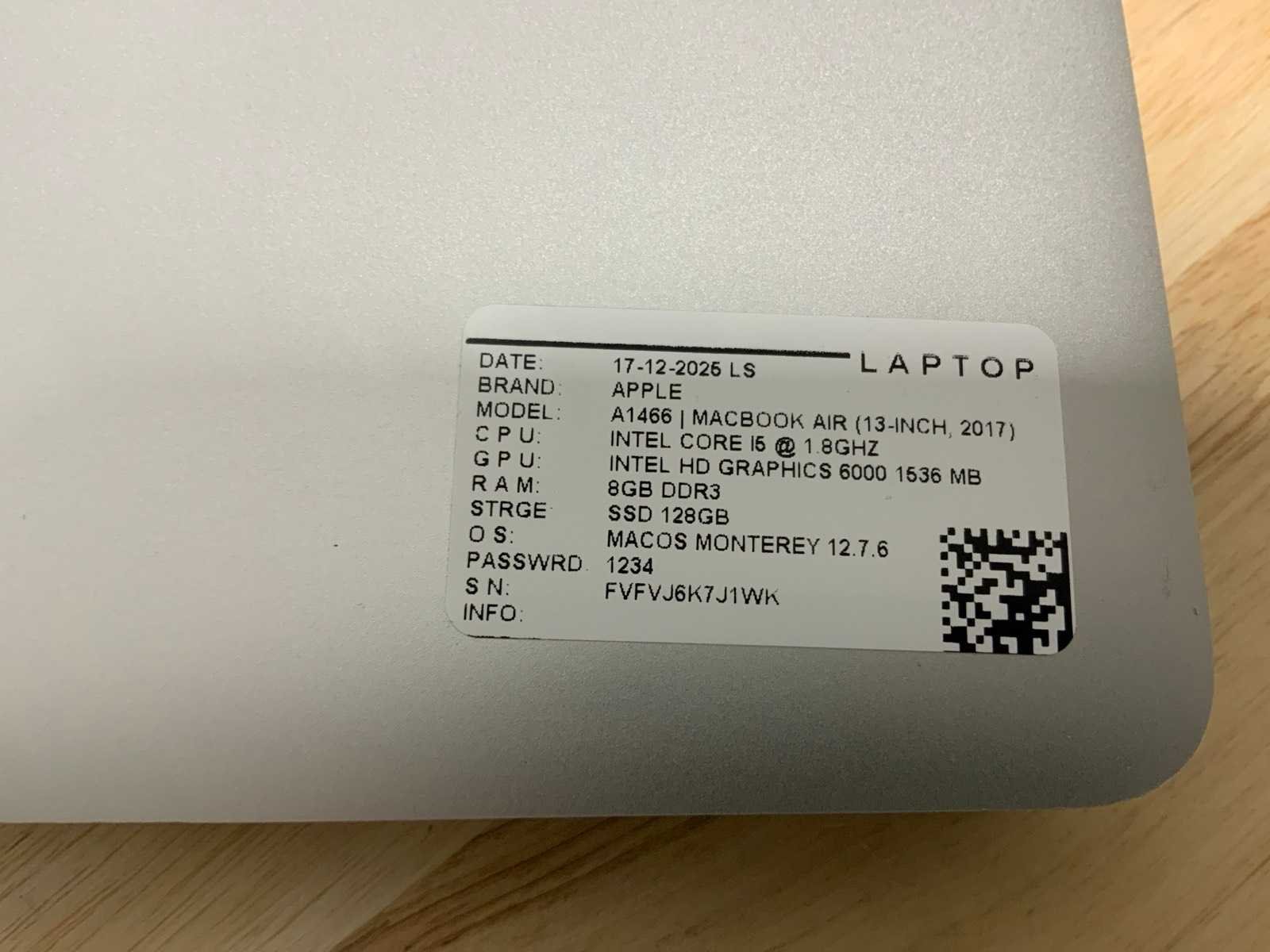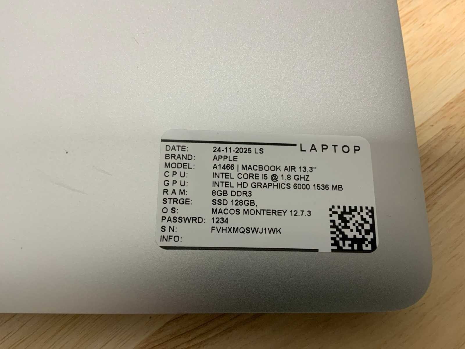 Merk: Apple Type: MACBook Air A1466 Processor type: Intel core i5 Processorsnelheid Ghz: 1.8 RAM Geheugen: 8GB RAM Geheugen Type: DDR3 Totale opslagcapaciteit: 128GB Type datadrager: M.2 NVMe Aantal datadragers: 1 Type videokaart: Intel HD Graphics 6000 Besturingssysteem: Monterey/big sur/catalina Zonder adapter: true Beelddiagonaal: 13'' Wifi: true Bluetooth: true USB-Type: USB-A USB poorten: 2 Card reader: true Thunderbolt: true Koptelefoon aansluiting: true Webcam: true Toetsenbord: QWERTY
