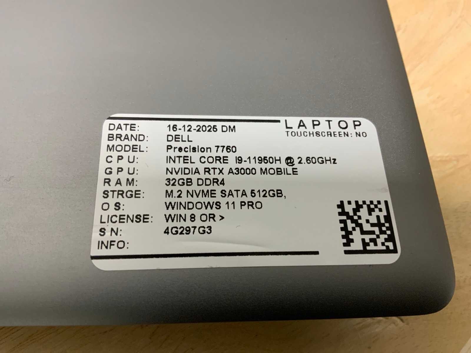 Merk: Dell Type: Precision 7760(i9) Processor type: Intel core i9-11950H Processorsnelheid Ghz: 2,6 RAM Geheugen: 32GB RAM Geheugen Type: Ddr4 Totale opslagcapaciteit: 512GB Type datadrager: Nvme Aantal datadragers: 1 Type videokaart: Nvidia rtx 3000 Besturingssysteem: Windows 11 pro Licentie: Onboard Zonder adapter: true Wifi: true Bluetooth: true Ethernet: 1 USB-Type: Usb-A/Usb-C USB poorten: 5 Card reader: true Koptelefoon aansluiting: true Webcam: true Toetsenbord: Qwertz HDMI: 1