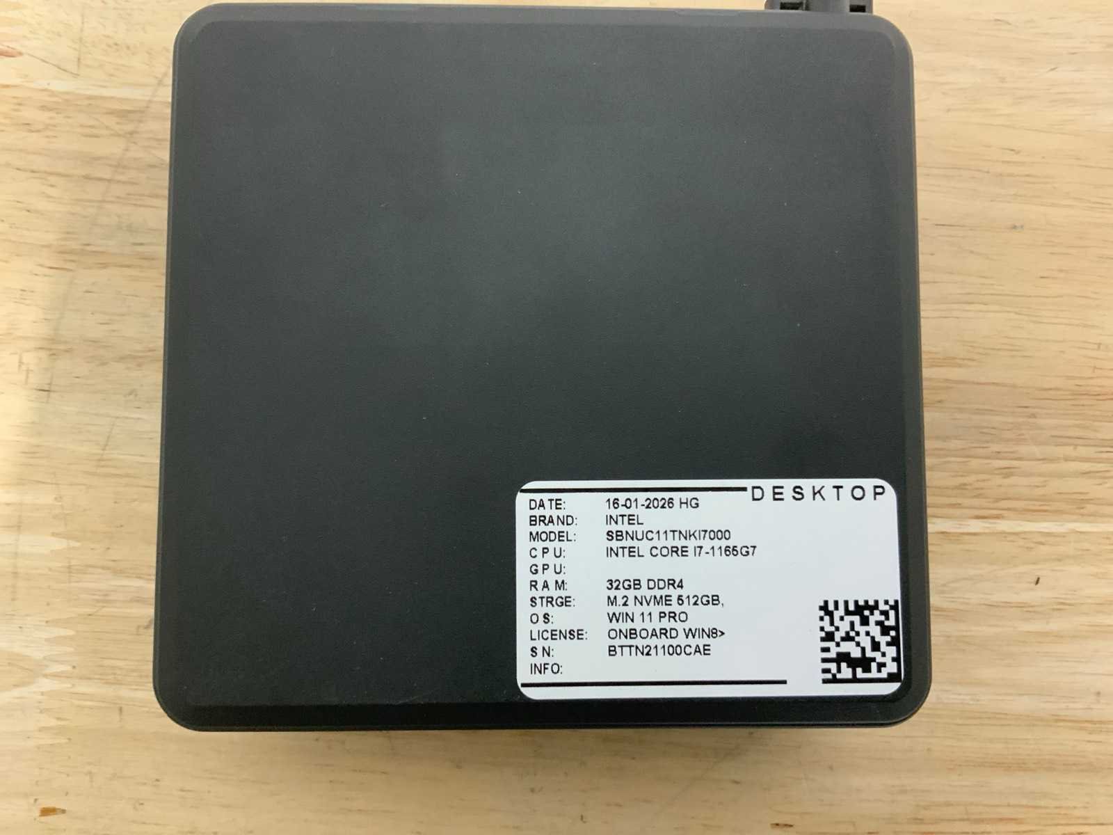 Merk: Intel Type: SBNUC11TNKI7000 Processor type: Intel core i7-1165G7 Processorsnelheid Ghz: 4,7 max turbo Besturingssysteem: Windows 11 pro Type datadrager: Nvme RAM Geheugen: 32GB RAM Geheugen Type: DDR4 Opslagcapaciteit: 512GB Bluetooth: true HDMI: 1 Wifi: true USB poorten: 6 Zonder voedingskabel: true