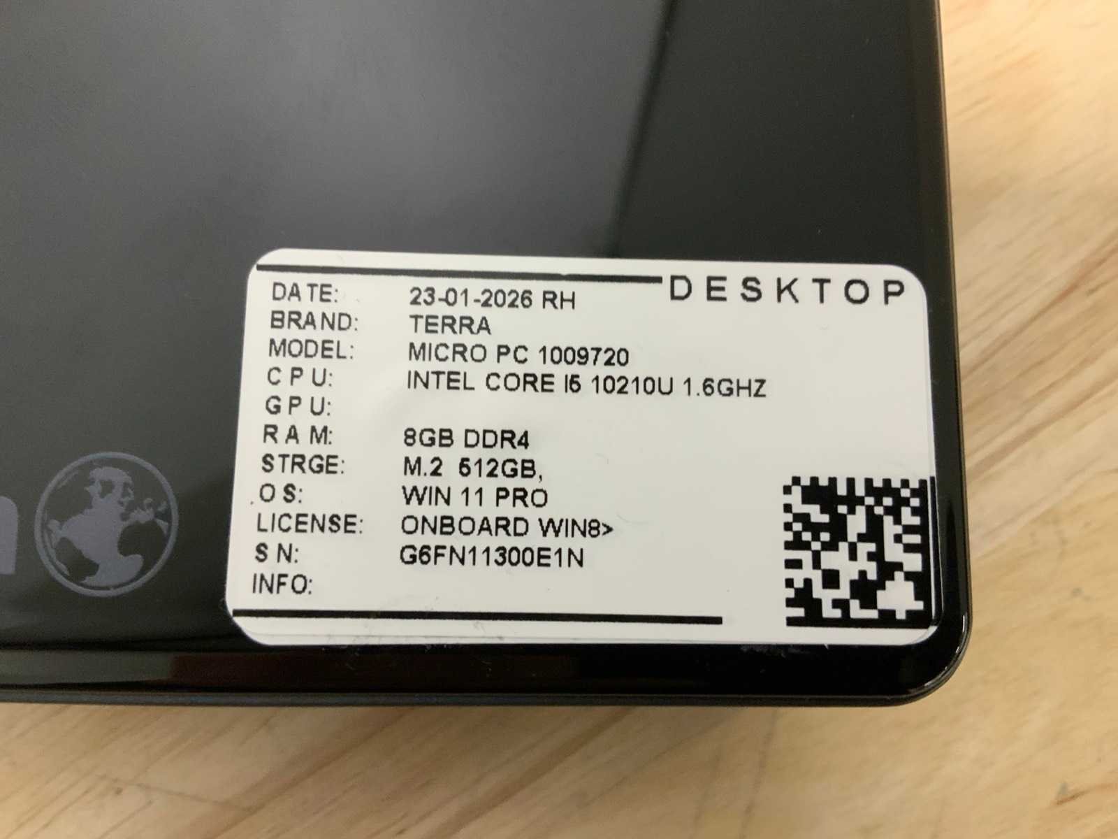 Merk: Terra Type: Micro pc 1009720 Processor type: Intel core i5 10210U Processorsnelheid Ghz: 1,60 Besturingssysteem: Windows 11 pro Type datadrager: Nvme RAM Geheugen: 8GB RAM Geheugen Type: Ddr4 Opslagcapaciteit: 512GB HDMI: 1 Ethernet: 1 USB poorten: 5 Zonder voedingskabel: true
