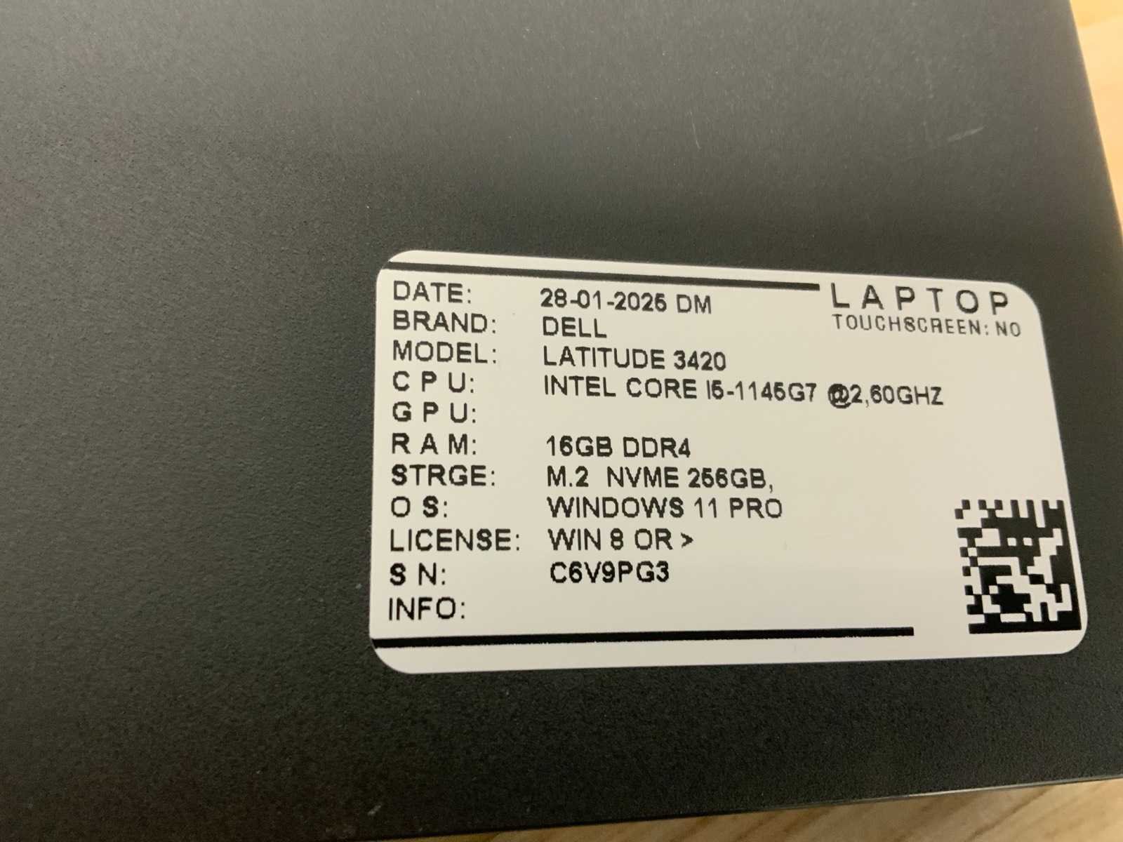 Merk: Dell Type: Latitude 3420(i5-gen11) Processor type: Intel core i5-1145G7 Processorsnelheid Ghz: 2,60 RAM Geheugen: 16GB RAM Geheugen Type: Ddr4 Totale opslagcapaciteit: 256GB Type datadrager: Nvme Aantal datadragers: 1 Besturingssysteem: Windows 11 pro Licentie: Onboard Zonder adapter: true Wifi: true Bluetooth: true Ethernet: 1 USB-Type: Usb-C/Usb-A USB poorten: 4 Card reader: true Koptelefoon aansluiting: true Webcam: true Toetsenbord: Qwertz HDMI: 1