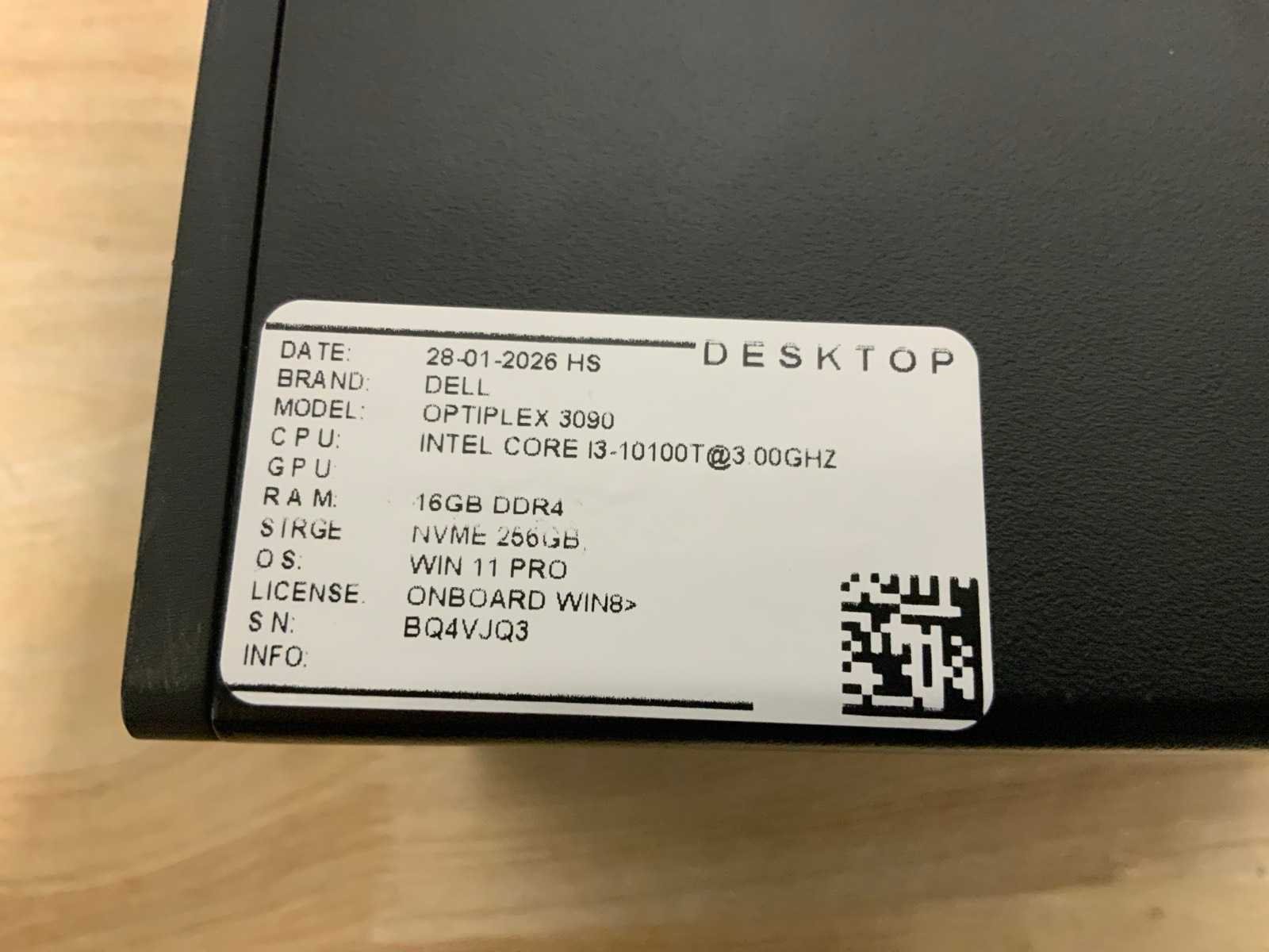 Getest; Merk: Dell Type: Optiplex 3090 Micro Processor type: Intel core i3-10100T Processor snelheid: 3.2Ghz Besturingssysteem: None Type datadrager: Nvme RAM Geheugen: 16GB RAM Geheugen Type: Ddr4 Opslagcapaciteit: 256GB Displaypoort: 2 Ethernet: 1 USB poorten: 5 Zonder voedingskabel: true Zonder adapter: true