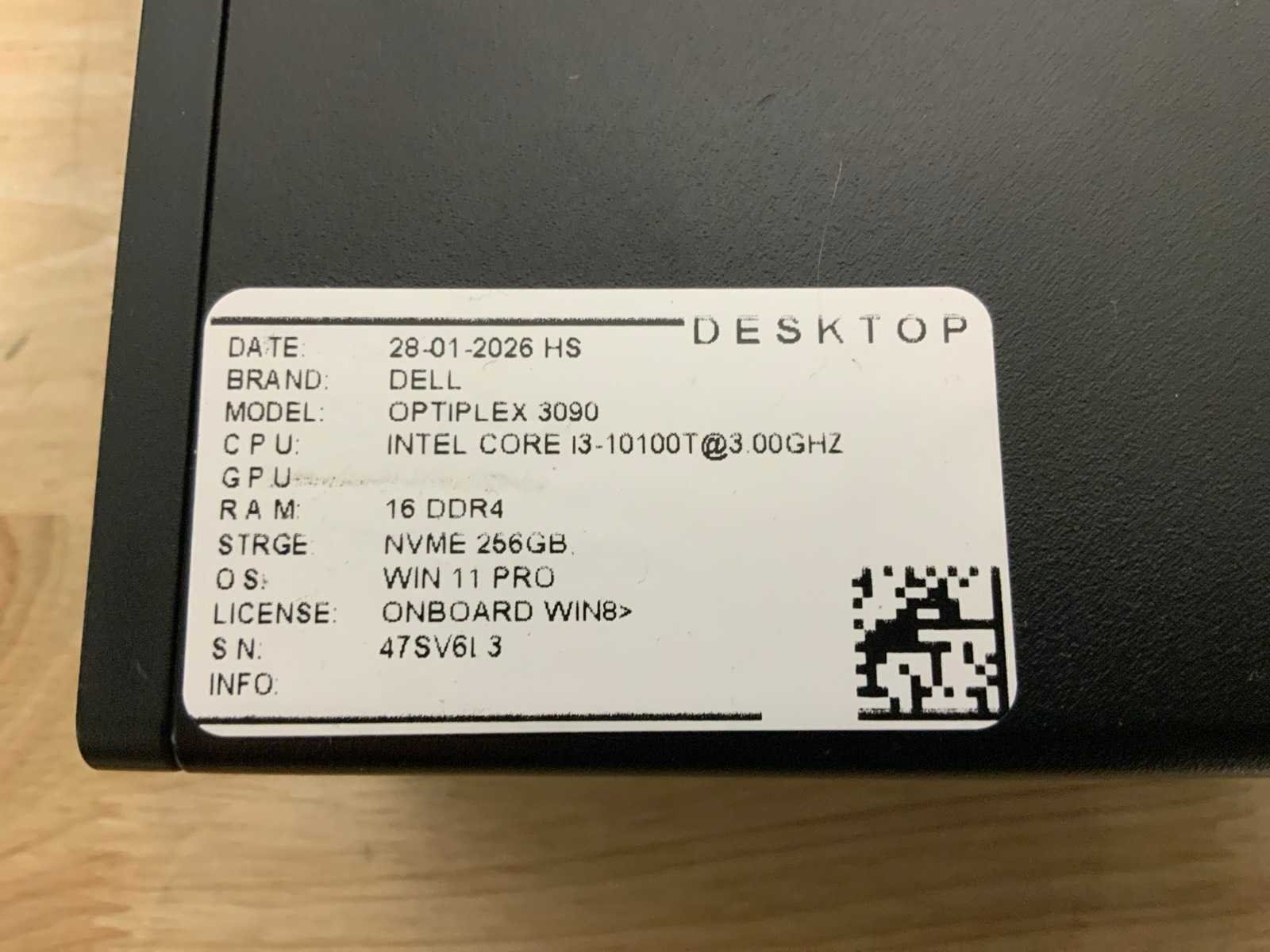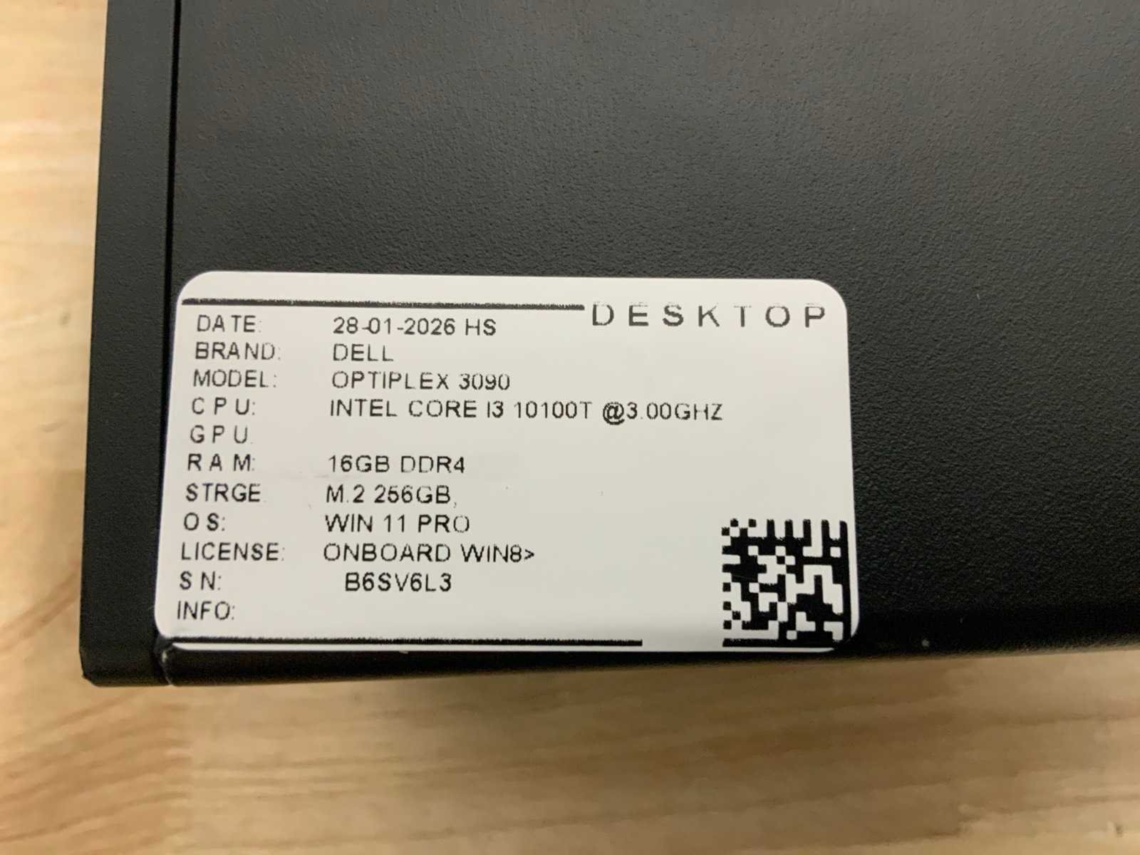 Getest; Merk: Dell Type: Optiplex 3090 Micro Processor type: Intel core i3-10100T Processor snelheid: 3.2Ghz Besturingssysteem: None Type datadrager: Nvme RAM Geheugen: 16GB RAM Geheugen Type: Ddr4 Opslagcapaciteit: 256GB Displaypoort: 2 Ethernet: 1 USB poorten: 5 Zonder voedingskabel: true Zonder adapter: true