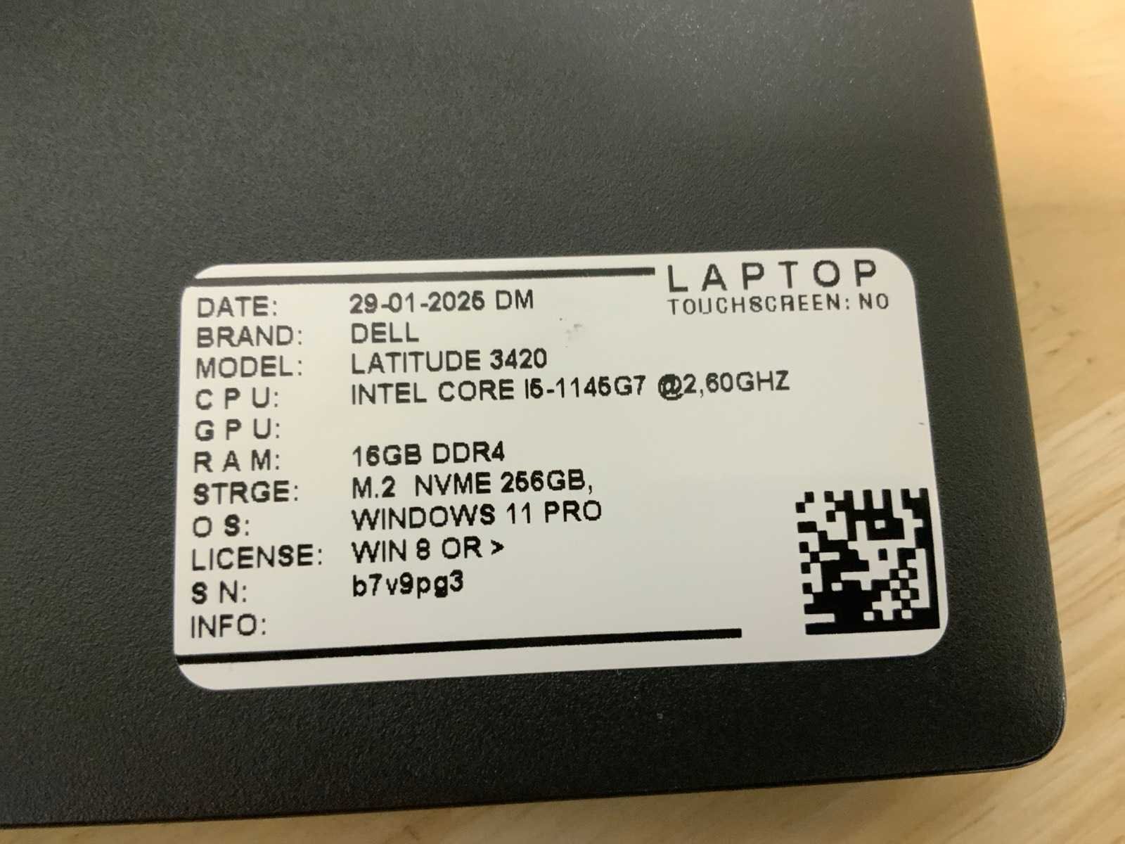 Merk: Dell Type: Latitude 3420(i5-gen11) Processor type: Intel core i5-1145G7 Processorsnelheid Ghz: 2,60 RAM Geheugen: 16GB RAM Geheugen Type: Ddr4 Totale opslagcapaciteit: 256GB Type datadrager: Nvme Aantal datadragers: 1 Besturingssysteem: Windows 11 pro Licentie: Onboard Zonder adapter: true Wifi: true Bluetooth: true Ethernet: 1 USB-Type: Usb-C/Usb-A USB poorten: 4 Card reader: true Koptelefoon aansluiting: true Webcam: true Toetsenbord: Qwertz HDMI: 1