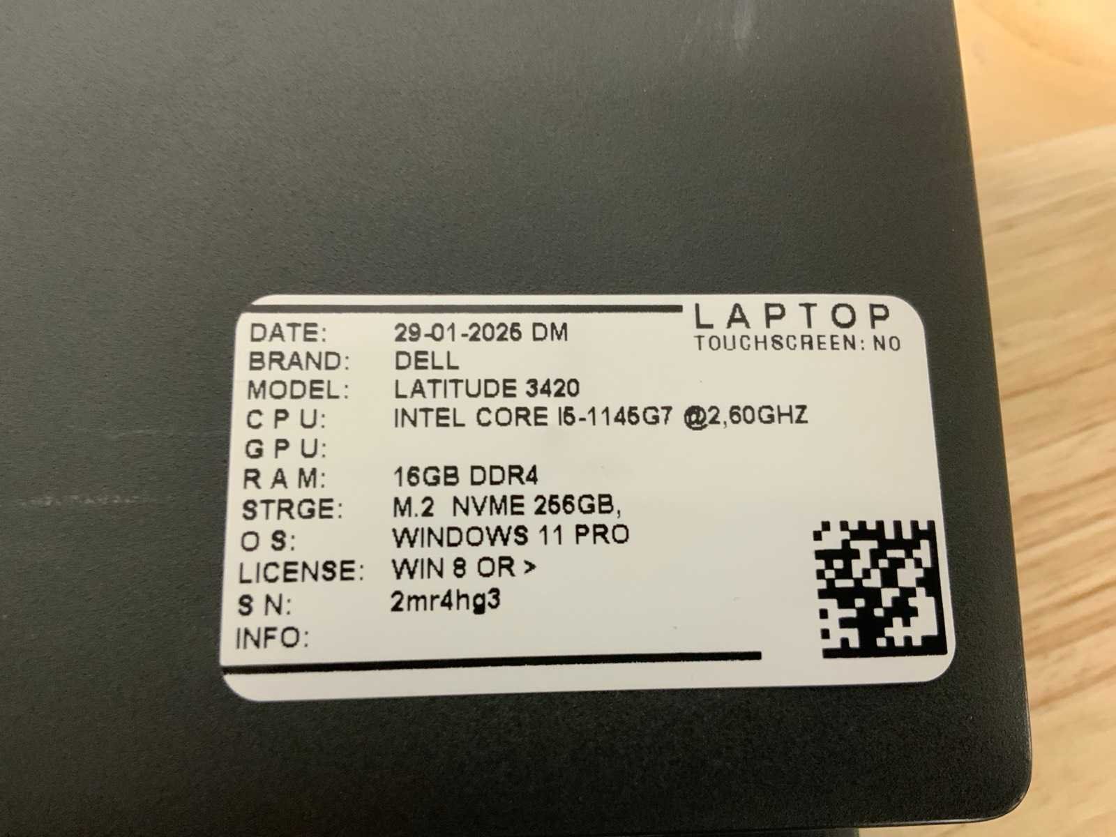Merk: Dell Type: Latitude 3420(i5-gen11) Processor type: Intel core i5-1145G7 Processorsnelheid Ghz: 2,60 RAM Geheugen: 16GB RAM Geheugen Type: Ddr4 Totale opslagcapaciteit: 256GB Type datadrager: Nvme Aantal datadragers: 1 Besturingssysteem: Windows 11 pro Licentie: Onboard Zonder adapter: true Wifi: true Bluetooth: true Ethernet: 1 USB-Type: Usb-C/Usb-A USB poorten: 4 Card reader: true Koptelefoon aansluiting: true Webcam: true Toetsenbord: Qwertz HDMI: 1