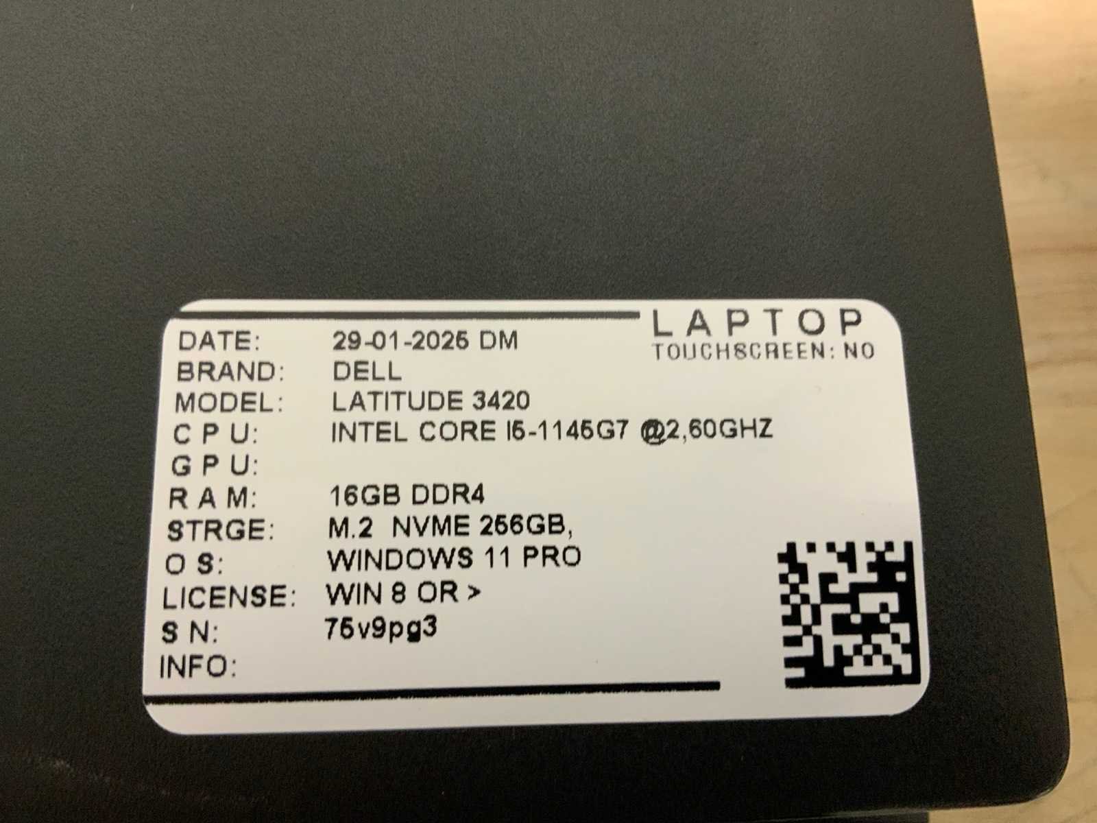 Merk: Dell Type: Latitude 3420(i5-gen11) Processor type: Intel core i5-1145G7 Processorsnelheid Ghz: 2,60 RAM Geheugen: 16GB RAM Geheugen Type: Ddr4 Totale opslagcapaciteit: 256GB Type datadrager: Nvme Aantal datadragers: 1 Besturingssysteem: Windows 11 pro Licentie: Onboard Zonder adapter: true Wifi: true Bluetooth: true Ethernet: 1 USB-Type: Usb-C/Usb-A USB poorten: 4 Card reader: true Koptelefoon aansluiting: true Webcam: true Toetsenbord: Qwertz HDMI: 1