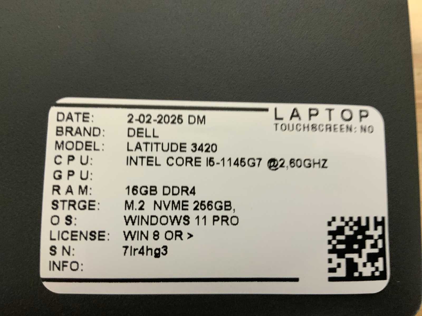 Merk: Dell Type: Latitude 3420(i5-gen11) Processor type: Intel core i5-1145G7 Processorsnelheid Ghz: 2,60 RAM Geheugen: 16GB RAM Geheugen Type: Ddr4 Totale opslagcapaciteit: 256GB Type datadrager: Nvme Aantal datadragers: 1 Besturingssysteem: Windows 11 pro Licentie: Onboard Zonder adapter: true Wifi: true Bluetooth: true Ethernet: 1 USB-Type: Usb-C/Usb-A USB poorten: 4 Card reader: true Koptelefoon aansluiting: true Webcam: true Toetsenbord: Qwertz HDMI: 1