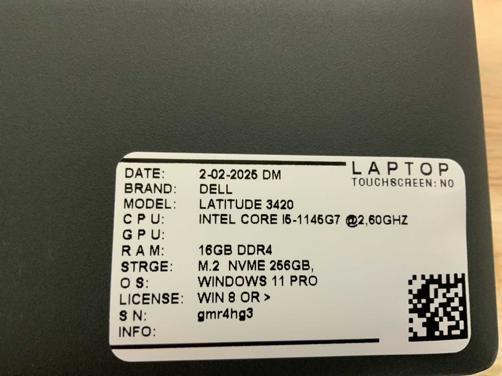 Merk: Dell Type: Latitude 3420(i5-gen11) Processor type: Intel core i5-1145G7 Processorsnelheid Ghz: 2,60 RAM Geheugen: 16GB RAM Geheugen Type: Ddr4 Totale opslagcapaciteit: 256GB Type datadrager: Nvme Aantal datadragers: 1 Besturingssysteem: Windows 11 pro Licentie: Onboard Zonder adapter: true Wifi: true Bluetooth: true Ethernet: 1 USB-Type: Usb-C/Usb-A USB poorten: 4 Card reader: true Koptelefoon aansluiting: true Webcam: true Toetsenbord: Qwertz HDMI: 1