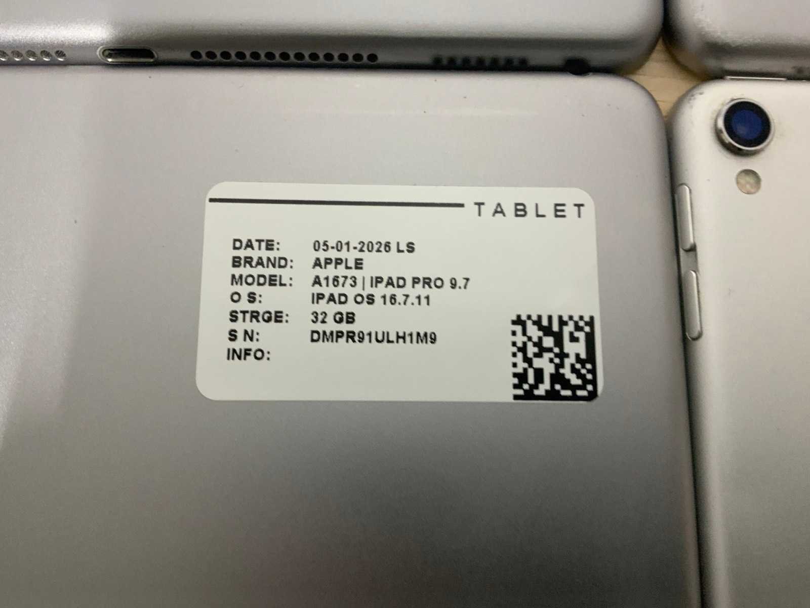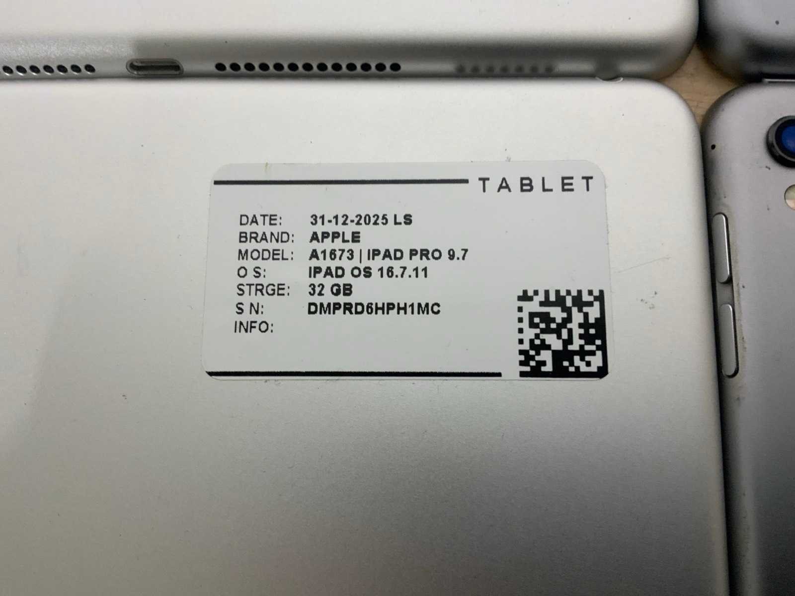 Getest; exlusief oplader; zie fotos voor specs Merk: Apple Type: iPad 5/6/pro Model: |A1822|A1893|A1673|A1709|A1954|A1823 Frontcamera: true Camera: true Integrated microphone: true Wifi: true Bluetooth: true Touchscreen: true Zonder oplader: true