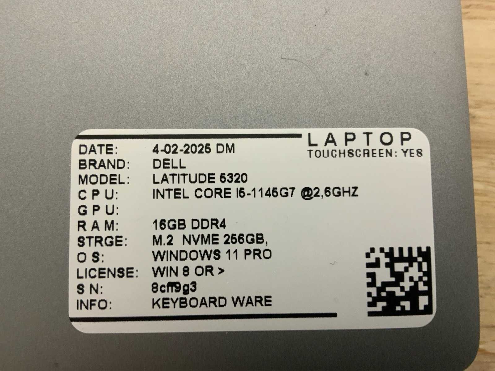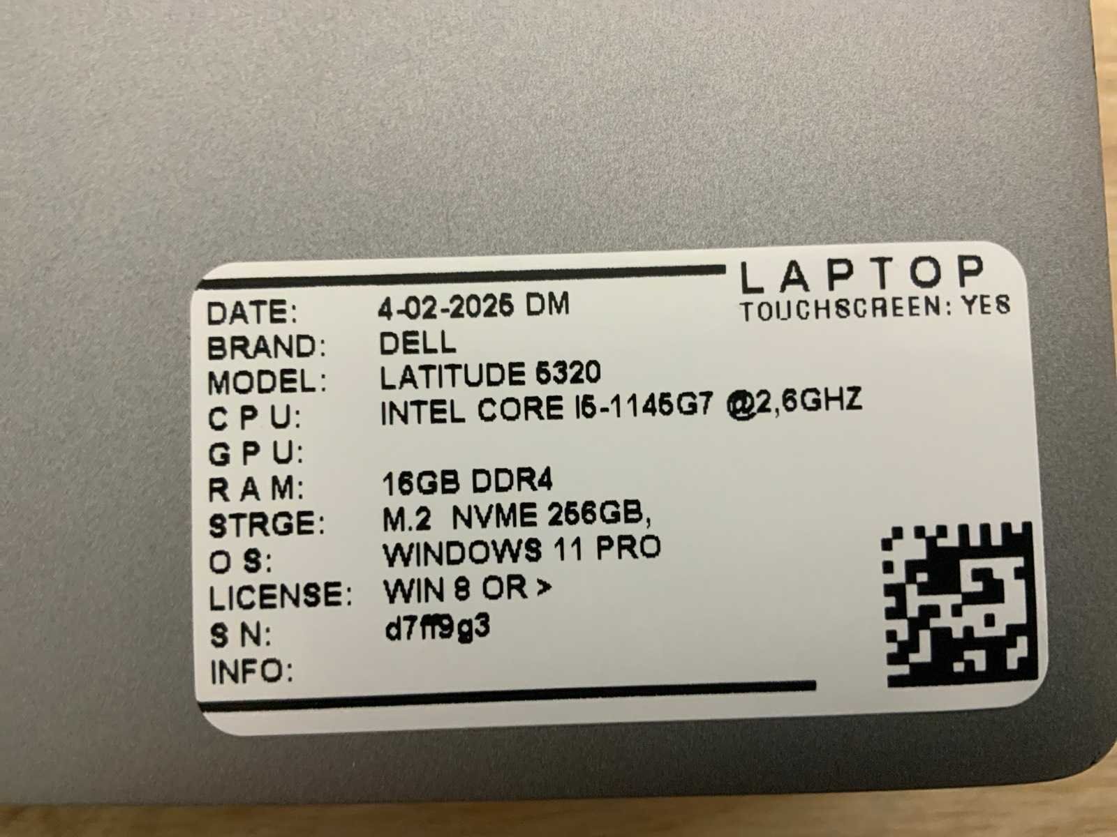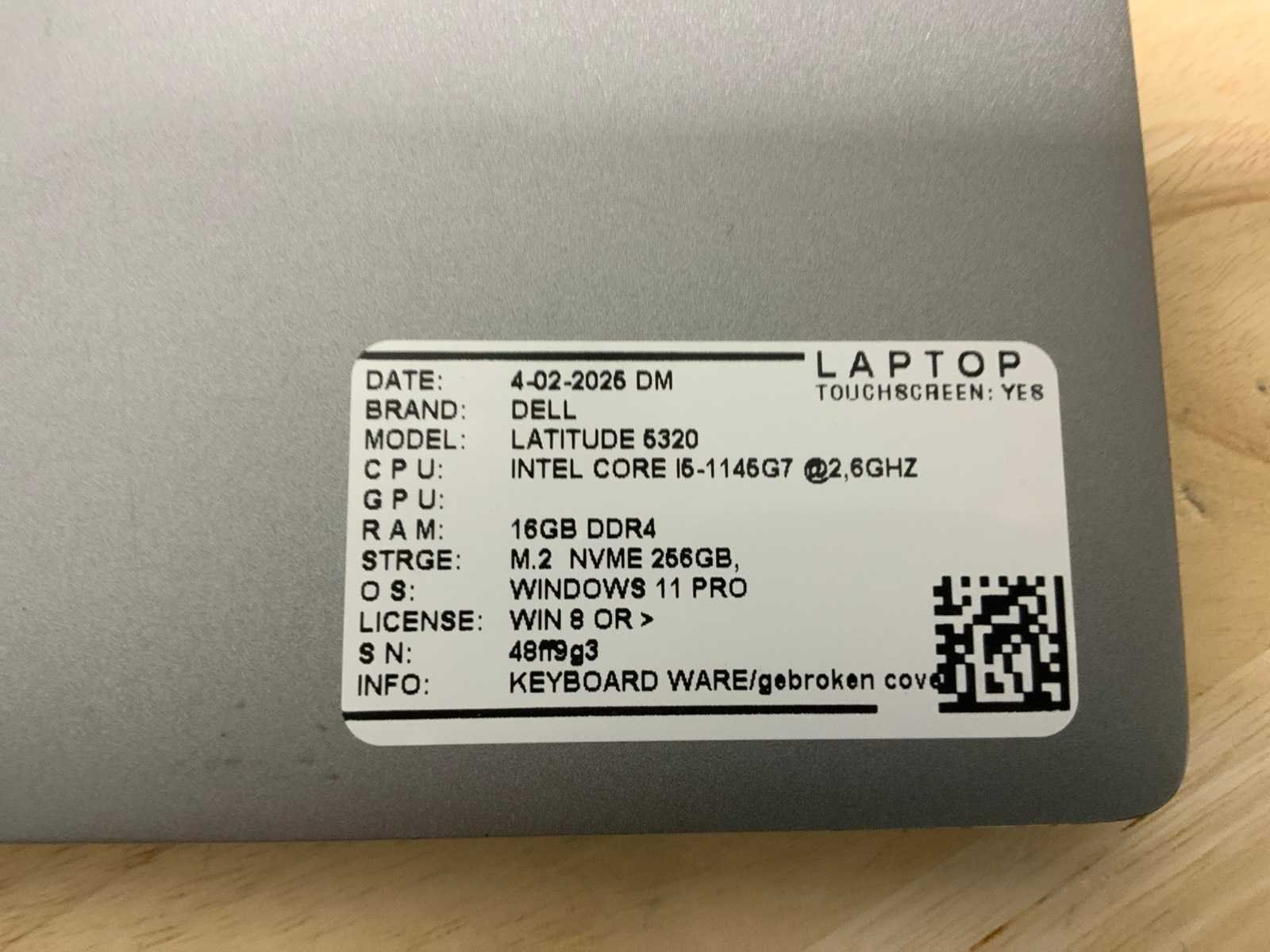 Merk: Dell Type: Latitude 5320 Processor type: Intel core i5-1145G7 Processorsnelheid Ghz: 2,6 RAM Geheugen: 16GB RAM Geheugen Type: DDR4 Totale opslagcapaciteit: 256GB Type datadrager: M.2 SSD Aantal datadragers: 1 Besturingssysteem: Windows 11 Pro Licentie: Onboard Zonder adapter: true Wifi: true Bluetooth: true Ethernet: 1 USB-Type: USB-A & USB-C USB poorten: 4 Card reader: true Koptelefoon aansluiting: true Webcam: true Toetsenbord: QWERTZ HDMI: 1