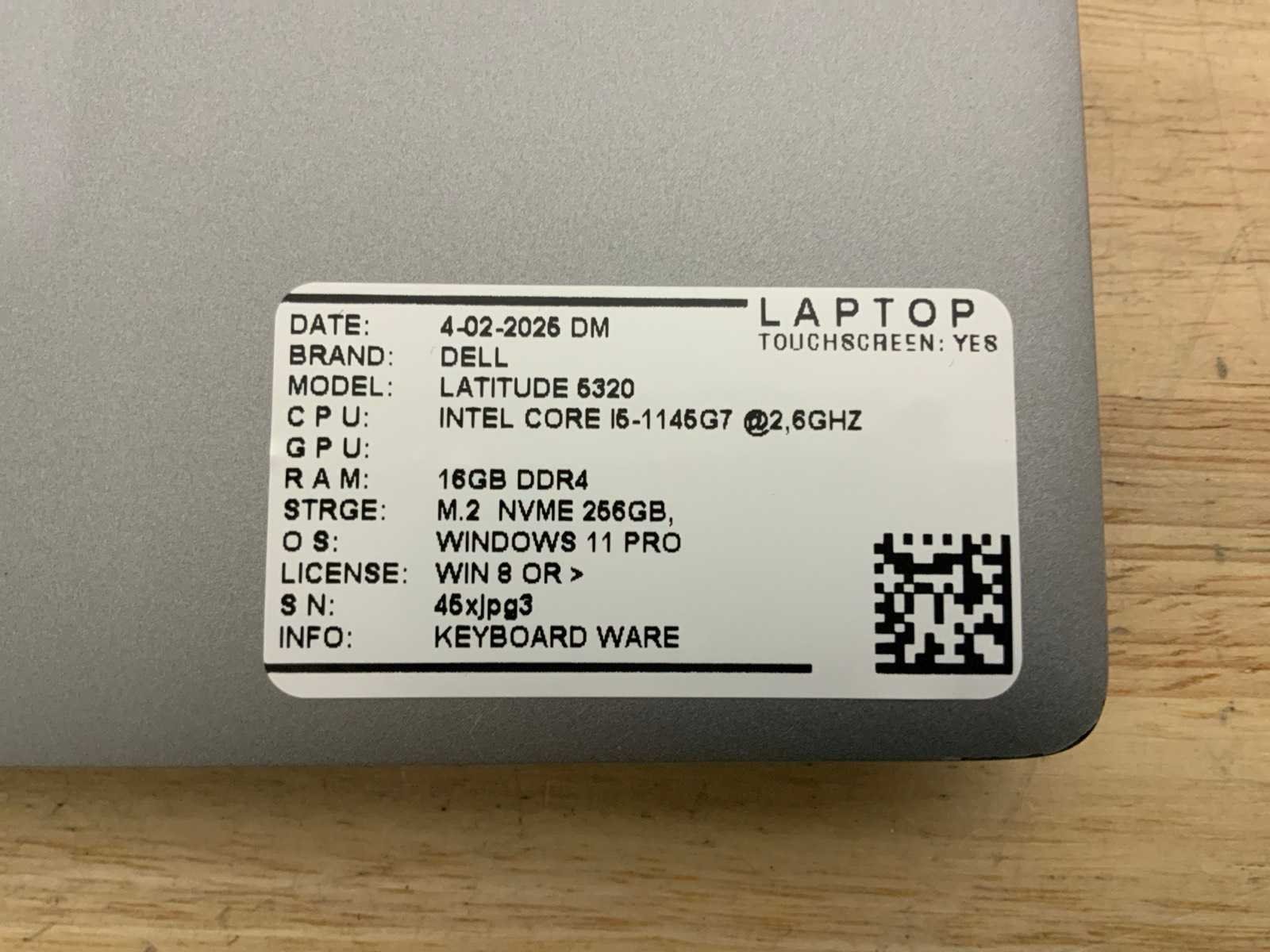 Merk: Dell Type: Latitude 5320 Processor type: Intel core i5-1145G7 Processorsnelheid Ghz: 2,6 RAM Geheugen: 16GB RAM Geheugen Type: DDR4 Totale opslagcapaciteit: 256GB Type datadrager: M.2 SSD Aantal datadragers: 1 Besturingssysteem: Windows 11 Pro Licentie: Onboard Zonder adapter: true Wifi: true Bluetooth: true Ethernet: 1 USB-Type: USB-A & USB-C USB poorten: 4 Card reader: true Koptelefoon aansluiting: true Webcam: true Toetsenbord: QWERTZ HDMI: 1