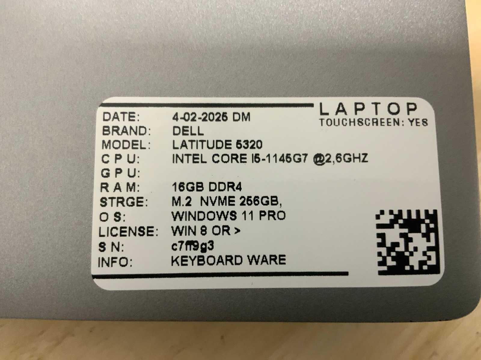 Merk: Dell Type: Latitude 5320 Processor type: Intel core i5-1145G7 Processorsnelheid Ghz: 2,6 RAM Geheugen: 16GB RAM Geheugen Type: DDR4 Totale opslagcapaciteit: 256GB Type datadrager: M.2 SSD Aantal datadragers: 1 Besturingssysteem: Windows 11 Pro Licentie: Onboard Zonder adapter: true Wifi: true Bluetooth: true Ethernet: 1 USB-Type: USB-A & USB-C USB poorten: 4 Card reader: true Koptelefoon aansluiting: true Webcam: true Toetsenbord: QWERTZ HDMI: 1