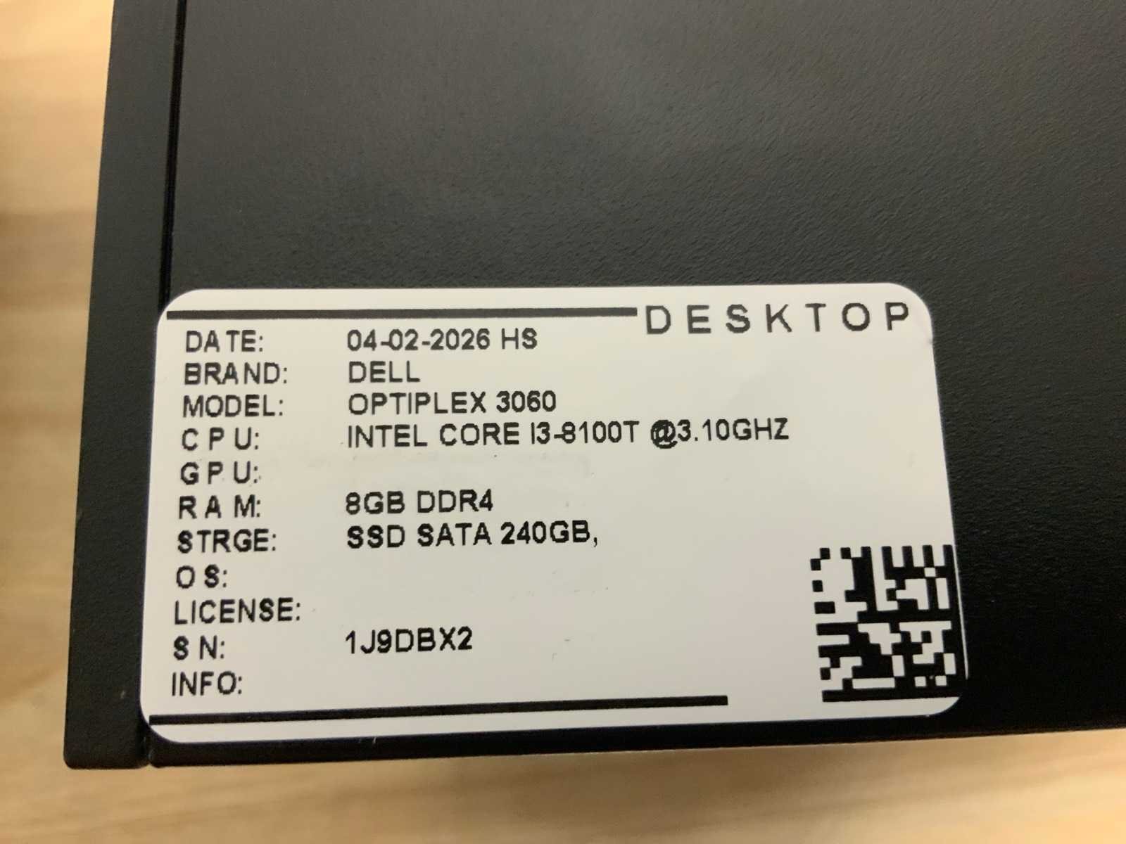 Merk: Dell Type: Optiplex 3060 micro Processor type: Intel core i3-8100T Processorsnelheid Ghz: 3,10 Besturingssysteem: Nvt Type datadrager: Ssd RAM Geheugen: 8GB RAM Geheugen Type: Ddr4 Opslagcapaciteit: 240GB Displaypoort: 1 HDMI: 1 Ethernet: 1 USB poorten: 6 Zonder voedingskabel: true