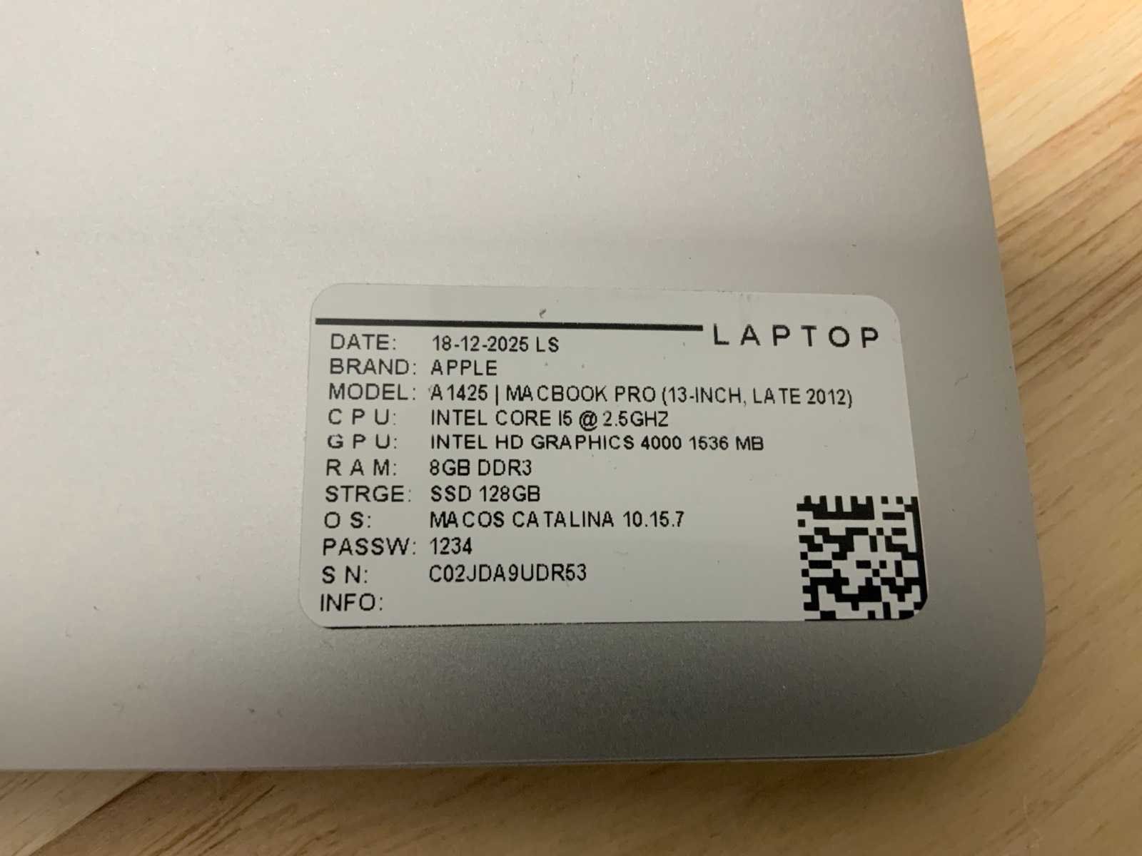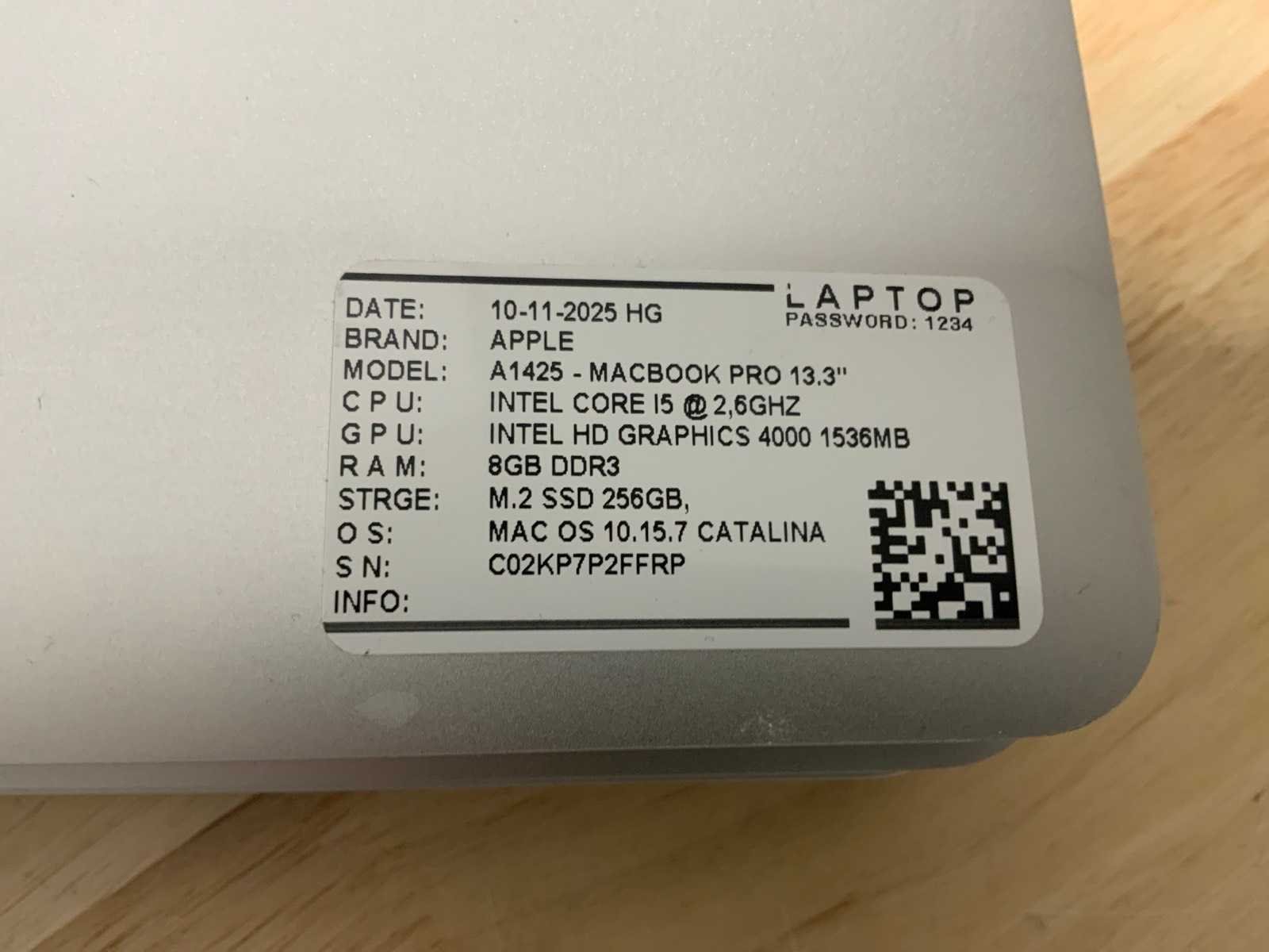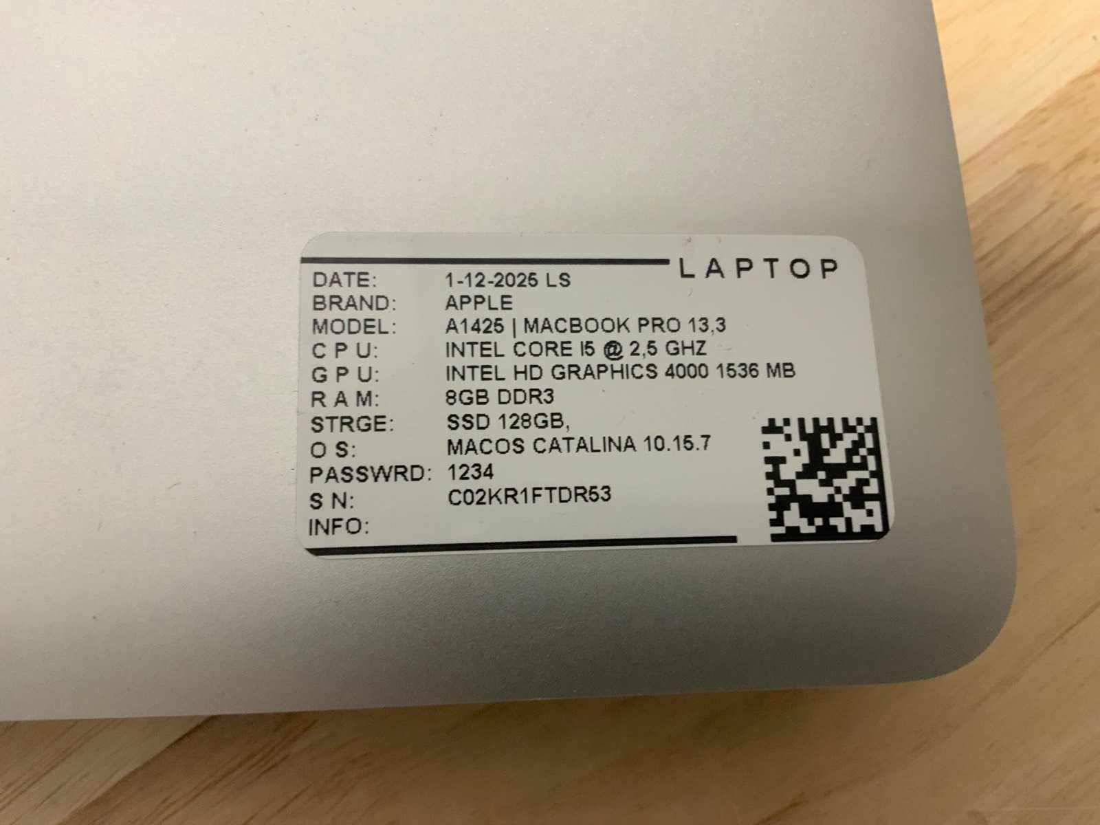 Merk: Apple Type: MACBook Air A1425 Processor type: Intel core i5 RAM Geheugen: 8GB RAM Geheugen Type: DDR3 Type datadrager: M.2 NVMe Aantal datadragers: 1 Type videokaart: Intel HD Graphics 4000 Besturingssysteem: Catalina Zonder adapter: true Beelddiagonaal: 13'' Wifi: true Bluetooth: true USB-Type: USB-A USB poorten: 2 Card reader: true Thunderbolt: true Koptelefoon aansluiting: true Webcam: true Toetsenbord: QWERTY