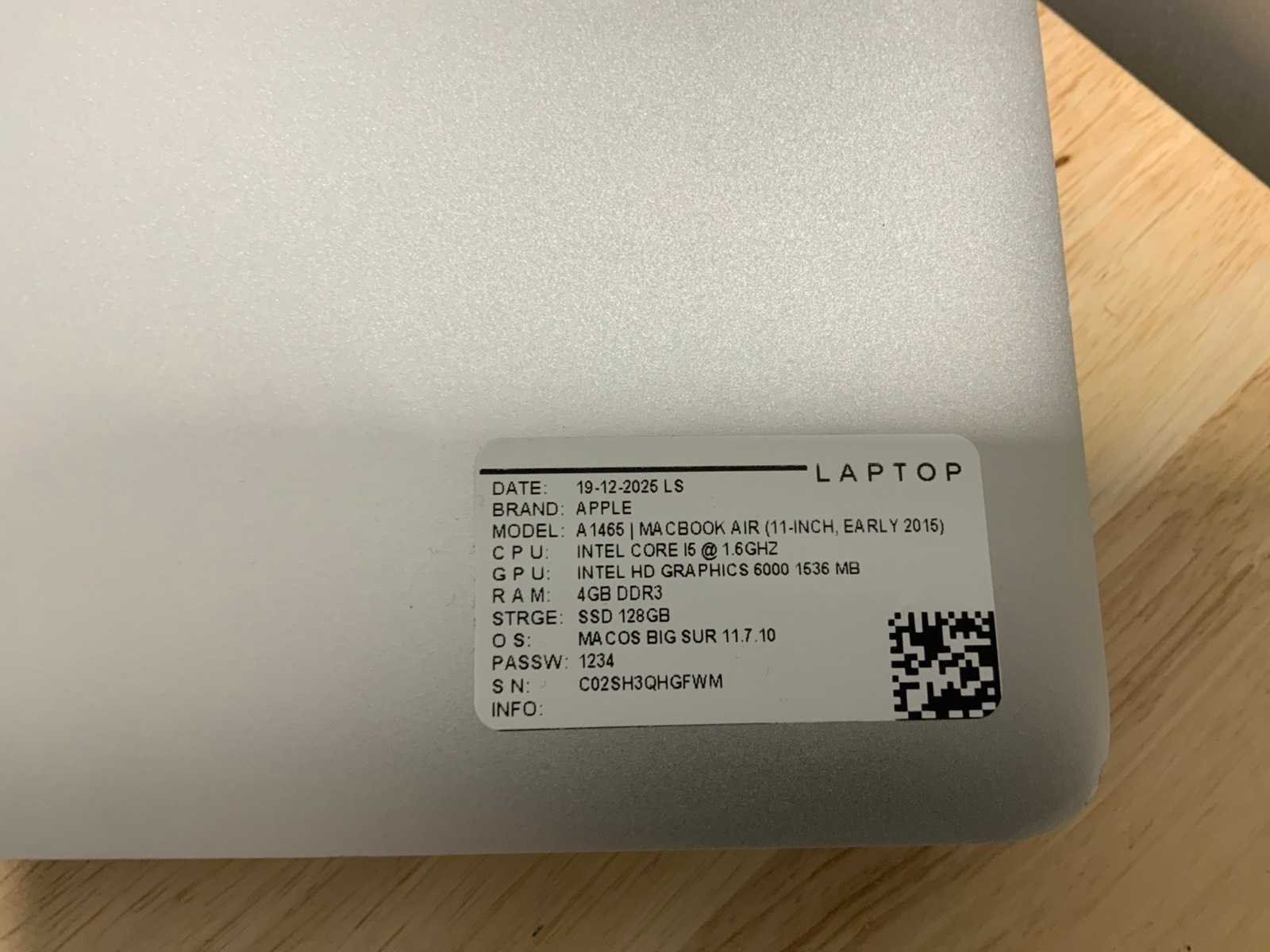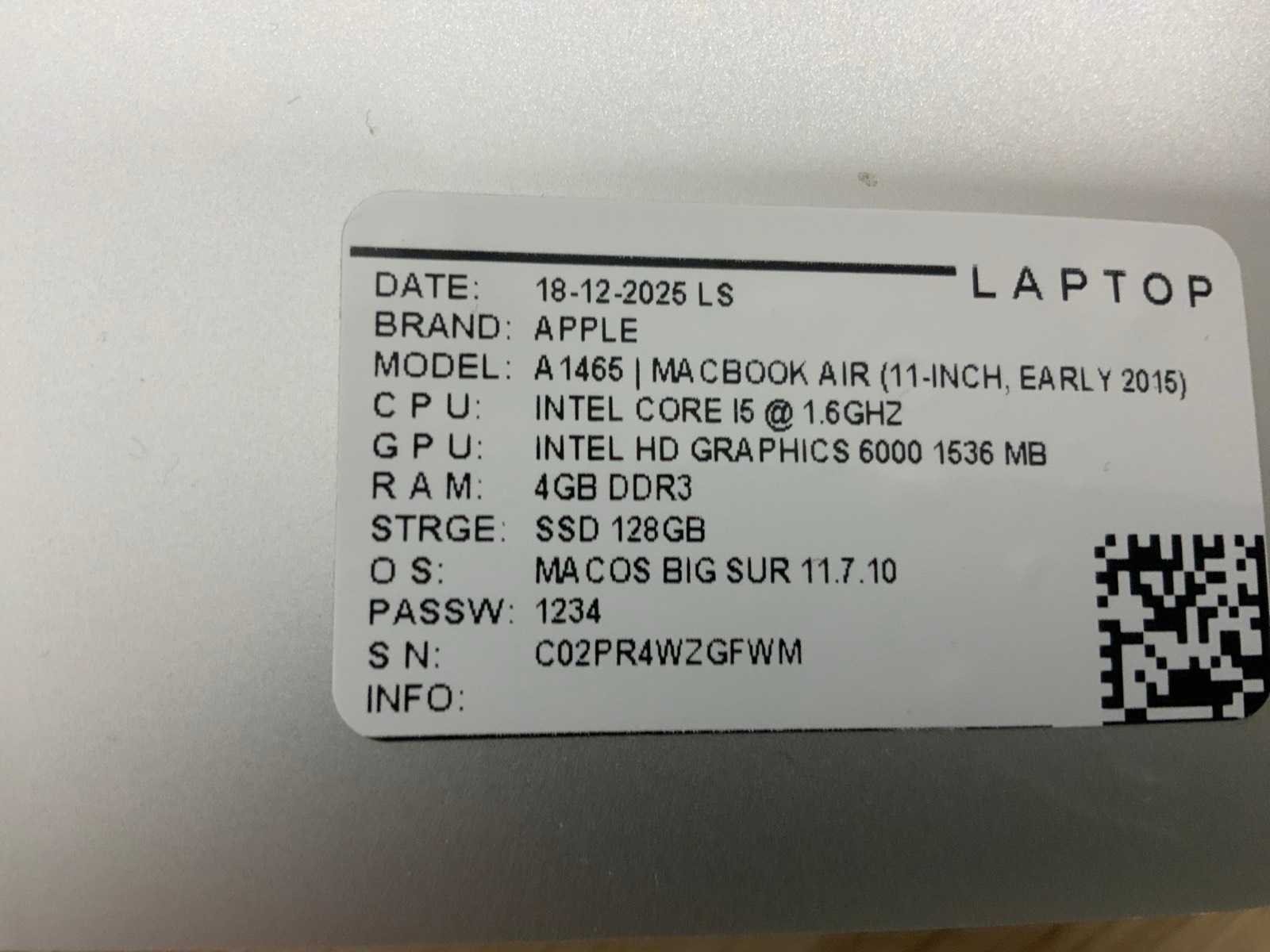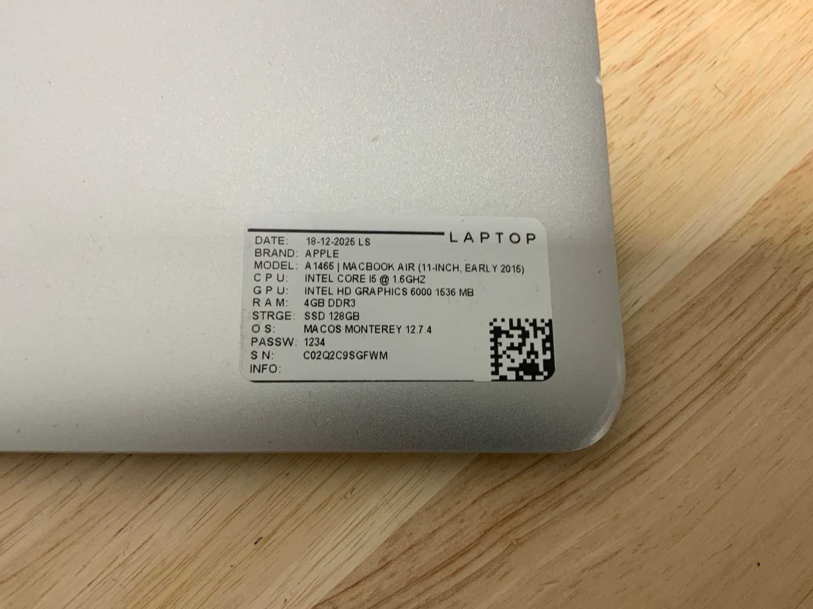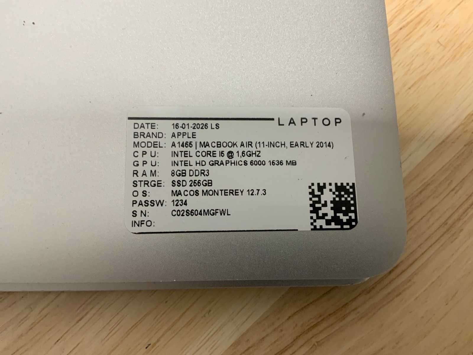 Merk: Apple Type: MACBook Air A1465 Processor type: Intel core i5 Processorsnelheid Ghz: 1,6 RAM Geheugen Type: DDR3 Type datadrager: M.2 NVMe Aantal datadragers: 1 Type videokaart: Intel HD Graphics 6000 Besturingssysteem: Big sur/monterey Zonder adapter: true Wifi: true Bluetooth: true USB-Type: USB-A USB poorten: 2 Card reader: true Thunderbolt: true Koptelefoon aansluiting: true Webcam: true Toetsenbord: QWERTY