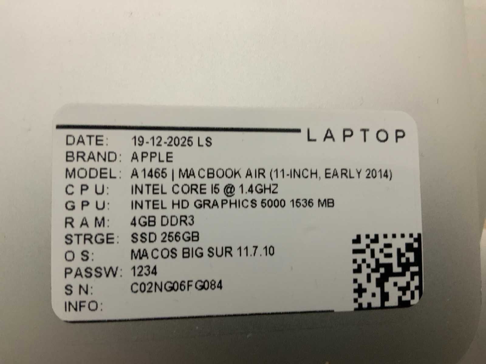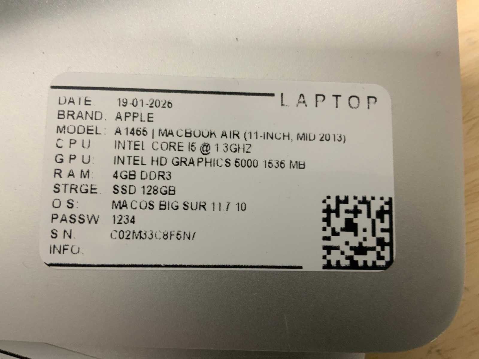 Merk: Apple Type: MACBook Air A1465 Processor type: Intel core i5 RAM Geheugen Type: DDR3 Type datadrager: M.2 NVMe Aantal datadragers: 1 Type videokaart: Intel HD Graphics 5000 Besturingssysteem: Big sur Zonder adapter: true Wifi: true Bluetooth: true USB-Type: USB-A USB poorten: 2 Card reader: true Thunderbolt: true Koptelefoon aansluiting: true Webcam: true Toetsenbord: QWERTY