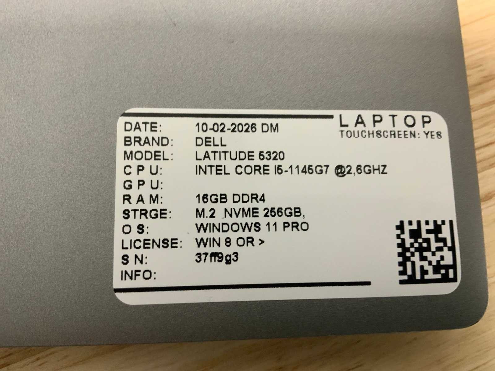 Merk: Dell Type: Latitude 5320 Processor type: Intel core i5-1145G7 Processorsnelheid Ghz: 2,6 RAM Geheugen: 16GB RAM Geheugen Type: DDR4 Totale opslagcapaciteit: 256GB Type datadrager: M.2 SSD Aantal datadragers: 1 Besturingssysteem: Windows 11 Pro Licentie: Onboard Zonder adapter: true Wifi: true Bluetooth: true Ethernet: 1 USB-Type: USB-A & USB-C USB poorten: 4 Card reader: true Koptelefoon aansluiting: true Webcam: true Toetsenbord: QWERTZ HDMI: 1