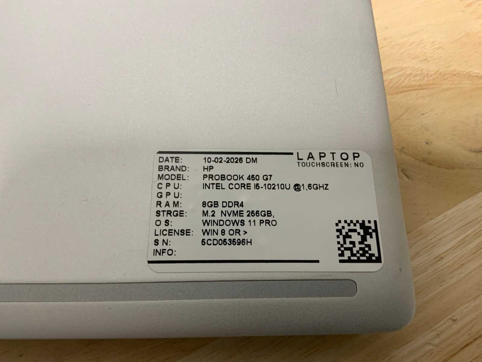Merk: Hp Type: ProBook 450 G7 Processor type: Intel core i5-10210U Processorsnelheid Ghz: 1,6 RAM Geheugen: 8GB RAM Geheugen Type: DDR4 Totale opslagcapaciteit: 256GB Type datadrager: M.2 SSD Aantal datadragers: 1 Besturingssysteem: Windows 11 Pro Licentie: Onboard Zonder adapter: true Wifi: true Bluetooth: true Ethernet: 1 USB-Type: USB-A & USB-C USB poorten: 4 Card reader: true Koptelefoon aansluiting: true Webcam: true Toetsenbord: QWERTY HDMI: 1