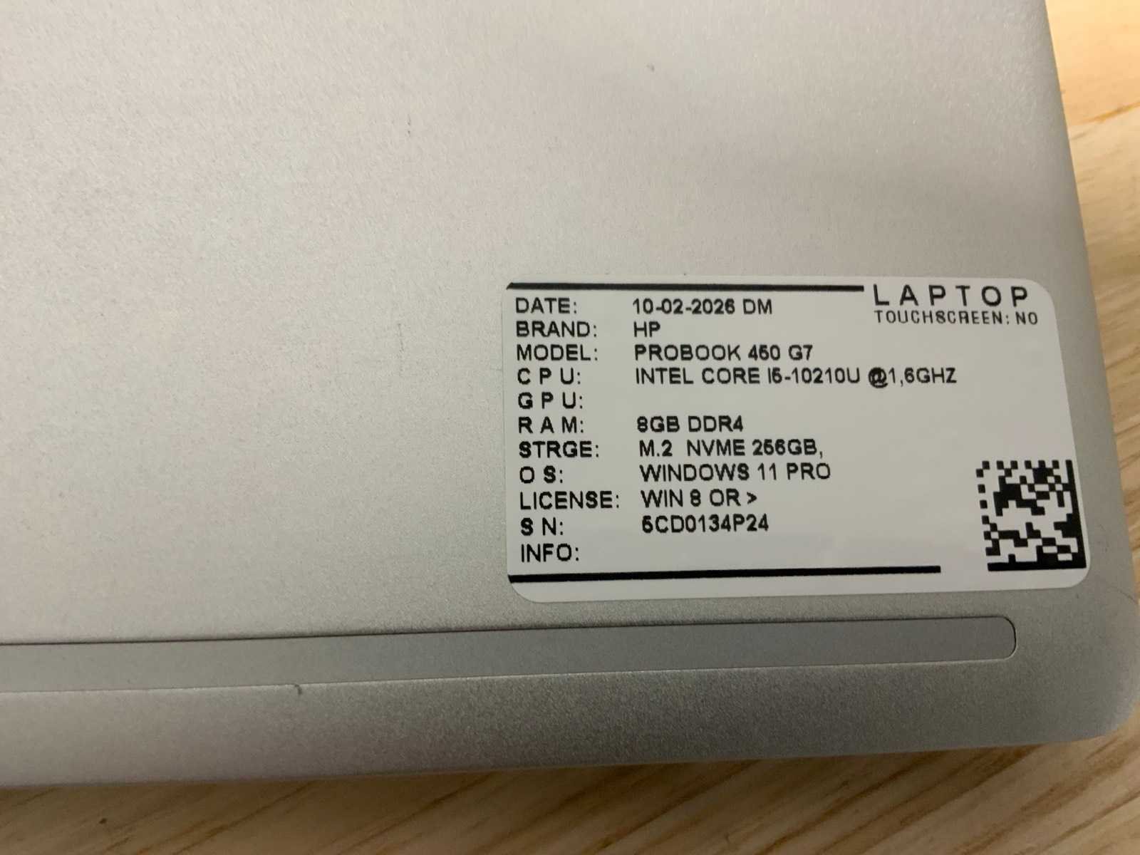 Merk: Hp Type: ProBook 450 G7 Processor type: Intel core i5-10210U Processorsnelheid Ghz: 1,6 RAM Geheugen: 8GB RAM Geheugen Type: DDR4 Totale opslagcapaciteit: 256GB Type datadrager: M.2 SSD Aantal datadragers: 1 Besturingssysteem: Windows 11 Pro Licentie: Onboard Zonder adapter: true Wifi: true Bluetooth: true Ethernet: 1 USB-Type: USB-A & USB-C USB poorten: 4 Card reader: true Koptelefoon aansluiting: true Webcam: true Toetsenbord: QWERTY HDMI: 1