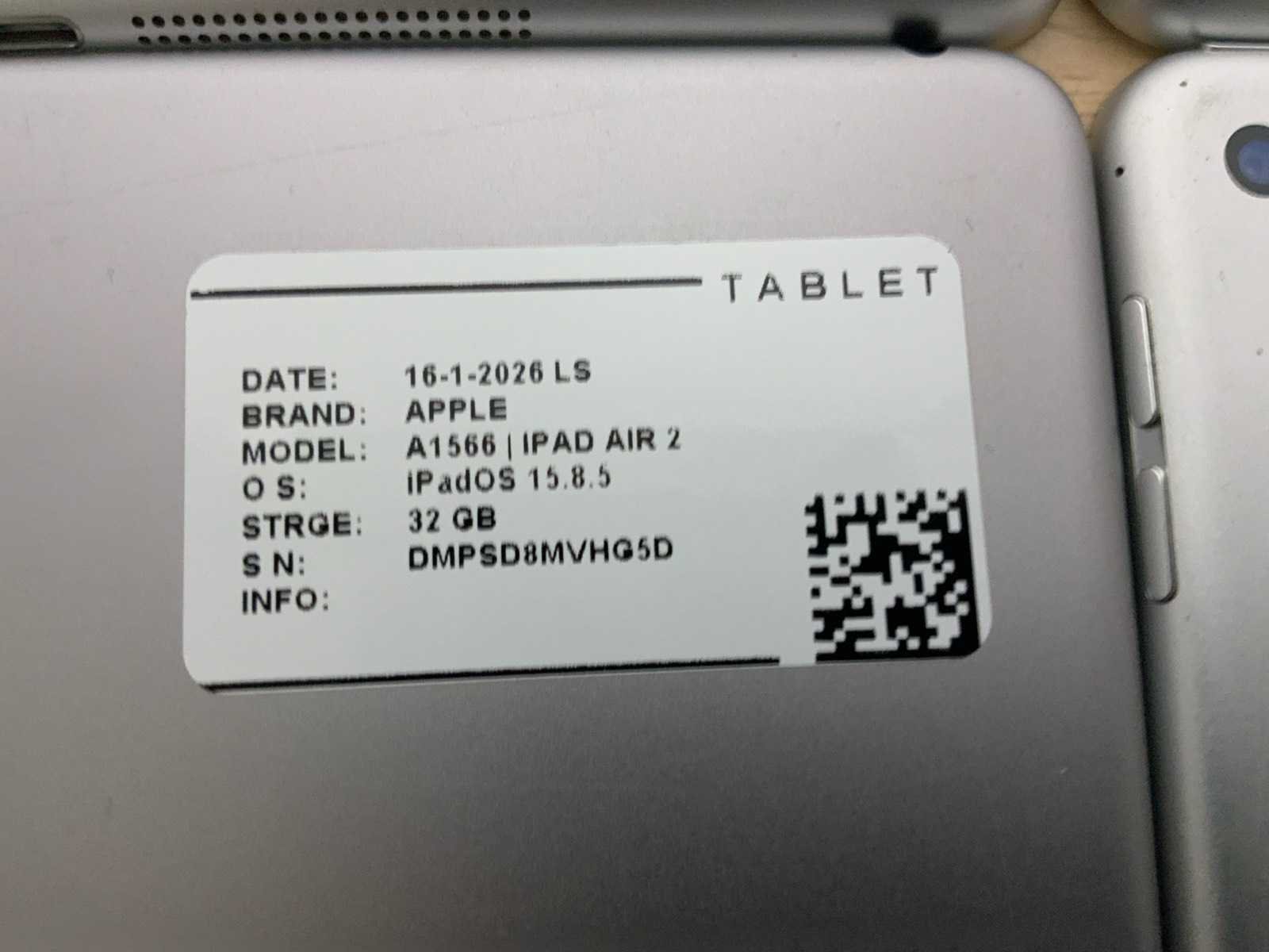 Merk: Apple Type: Ipad air2 & air Frontcamera: true Camera: true Integrated microphone: true Wifi: true Bluetooth: true Touchscreen: true Zonder oplader: true