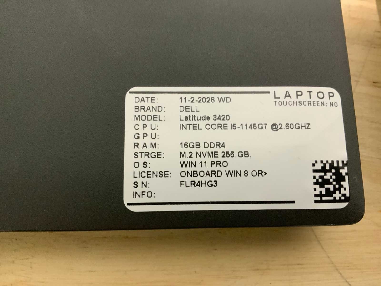 Merk: Dell Type: Latitude 3420(i5-gen11) Processor type: Intel core i5-1145G7 Processorsnelheid Ghz: 2,60 RAM Geheugen: 16GB RAM Geheugen Type: Ddr4 Totale opslagcapaciteit: 256GB Type datadrager: Nvme Aantal datadragers: 1 Besturingssysteem: Windows 11 pro Licentie: Onboard Zonder adapter: true Wifi: true Bluetooth: true Ethernet: 1 USB-Type: Usb-C/Usb-A USB poorten: 4 Card reader: true Koptelefoon aansluiting: true Webcam: true Toetsenbord: Qwertz HDMI: 1