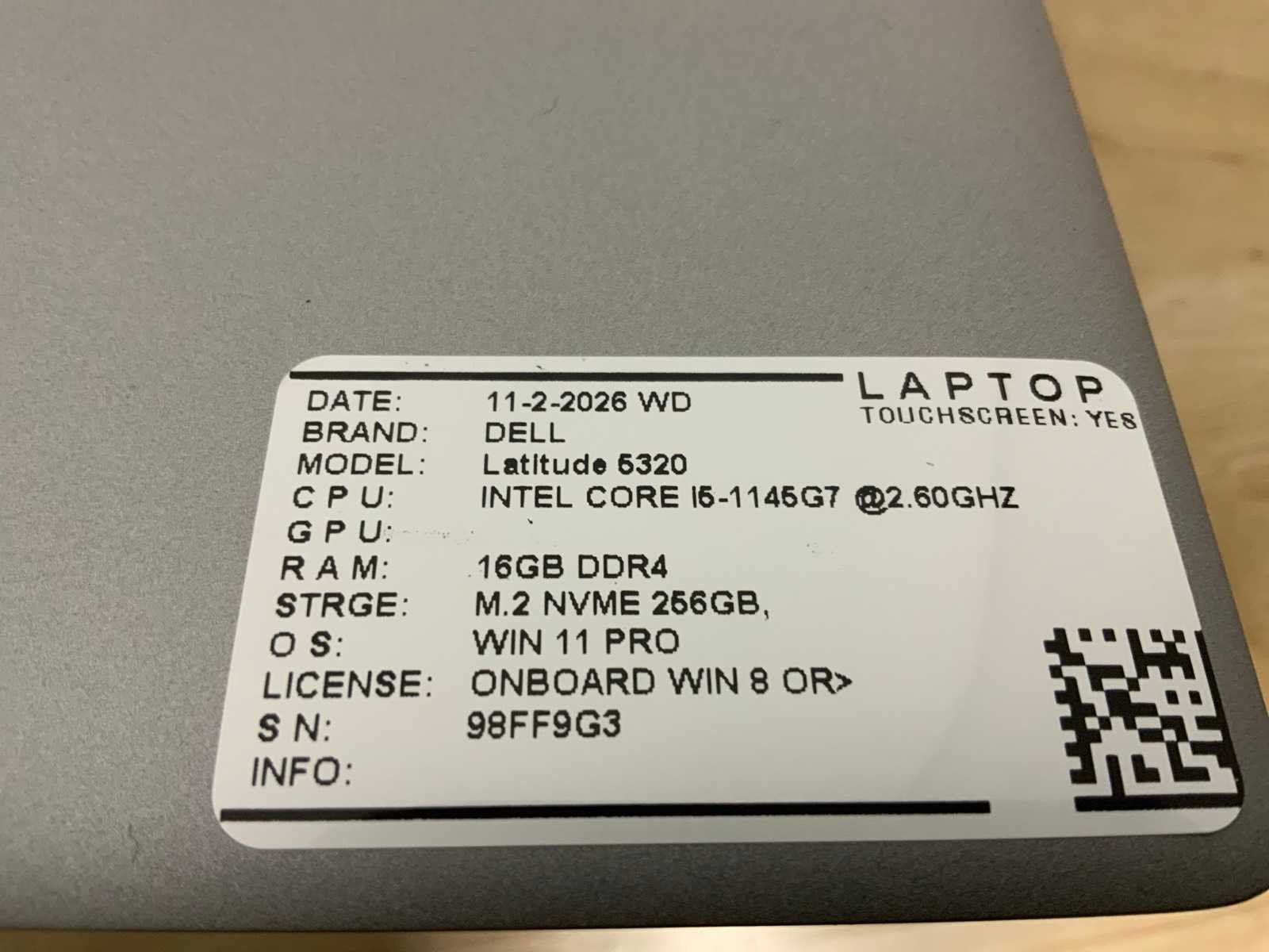 Merk: Dell Type: Latitude 5320 Processor type: Intel core i5-1145G7 Processorsnelheid Ghz: 2,6 RAM Geheugen: 16GB RAM Geheugen Type: DDR4 Totale opslagcapaciteit: 256GB Type datadrager: M.2 SSD Aantal datadragers: 1 Besturingssysteem: Windows 11 Pro Licentie: Onboard Zonder adapter: true Wifi: true Bluetooth: true Ethernet: 1 USB-Type: USB-A & USB-C USB poorten: 4 Card reader: true Koptelefoon aansluiting: true Webcam: true Toetsenbord: QWERTZ HDMI: 1