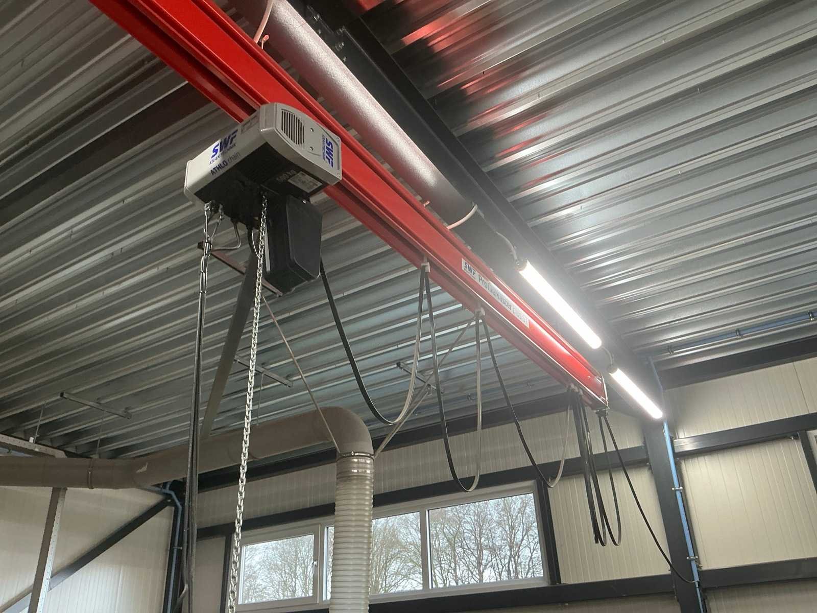 Voorzien van Athlo AA-085.1P-025 kettingtakel. De kraan hangt op circa 6,5 meter hoogte. De koper is zelf verantwoordelijk voor veilige demontage. Merk: SWF Type: ProfileMaster plus ST Bouwjaar: 2025 Overspanning: 12m Hijsvermogen: 500kg Met kraanbalk: true