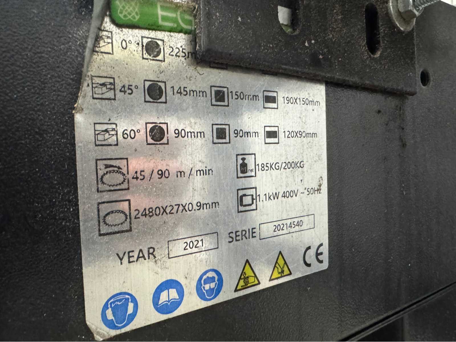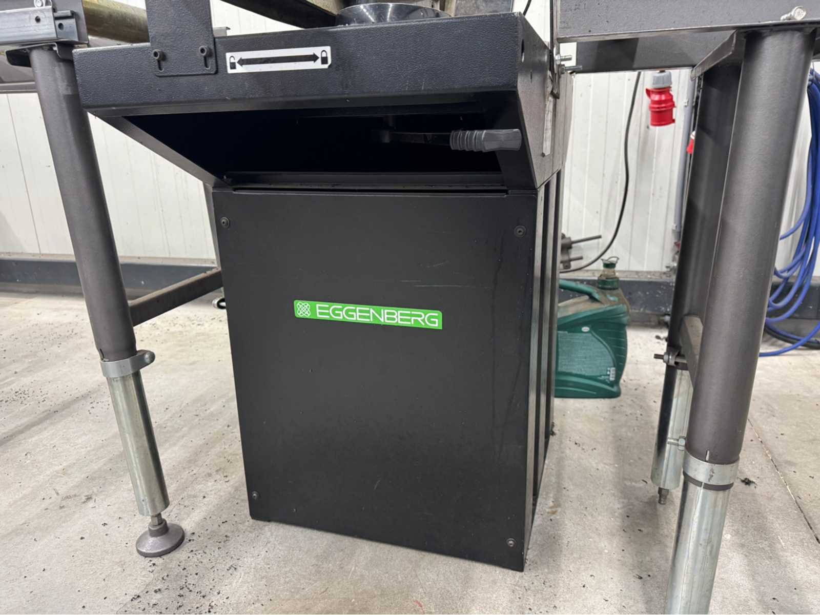Voorzien van aanvoerrollenbaan 259x42 cm en afvoerrollenbaan 200x42 cm. Merk: Eggenberg Bouwjaar: 2021 Serienummer: 20214540 Aansluiting: 380V Afmeting l: 1200mm Afmeting b: 750mm