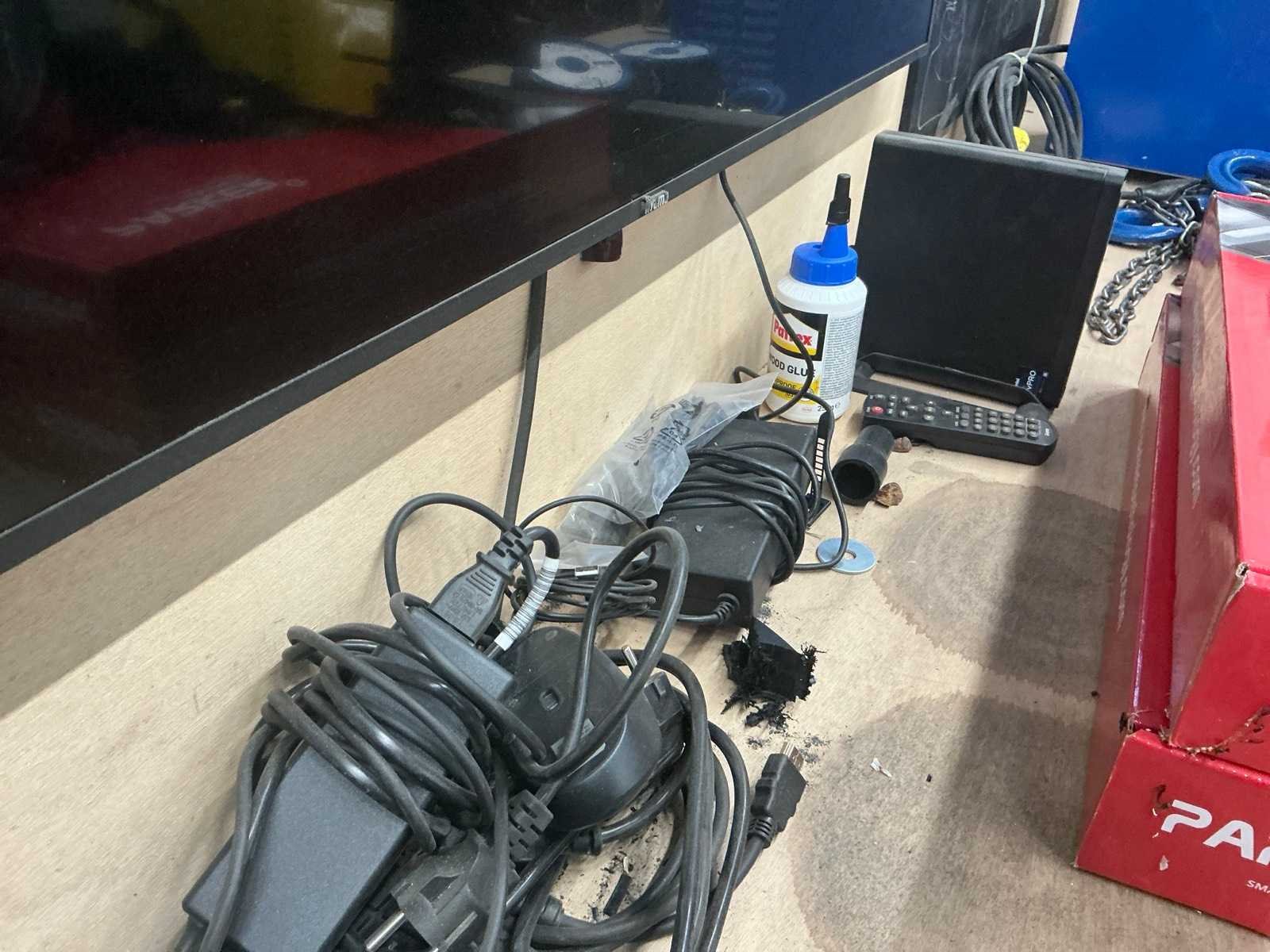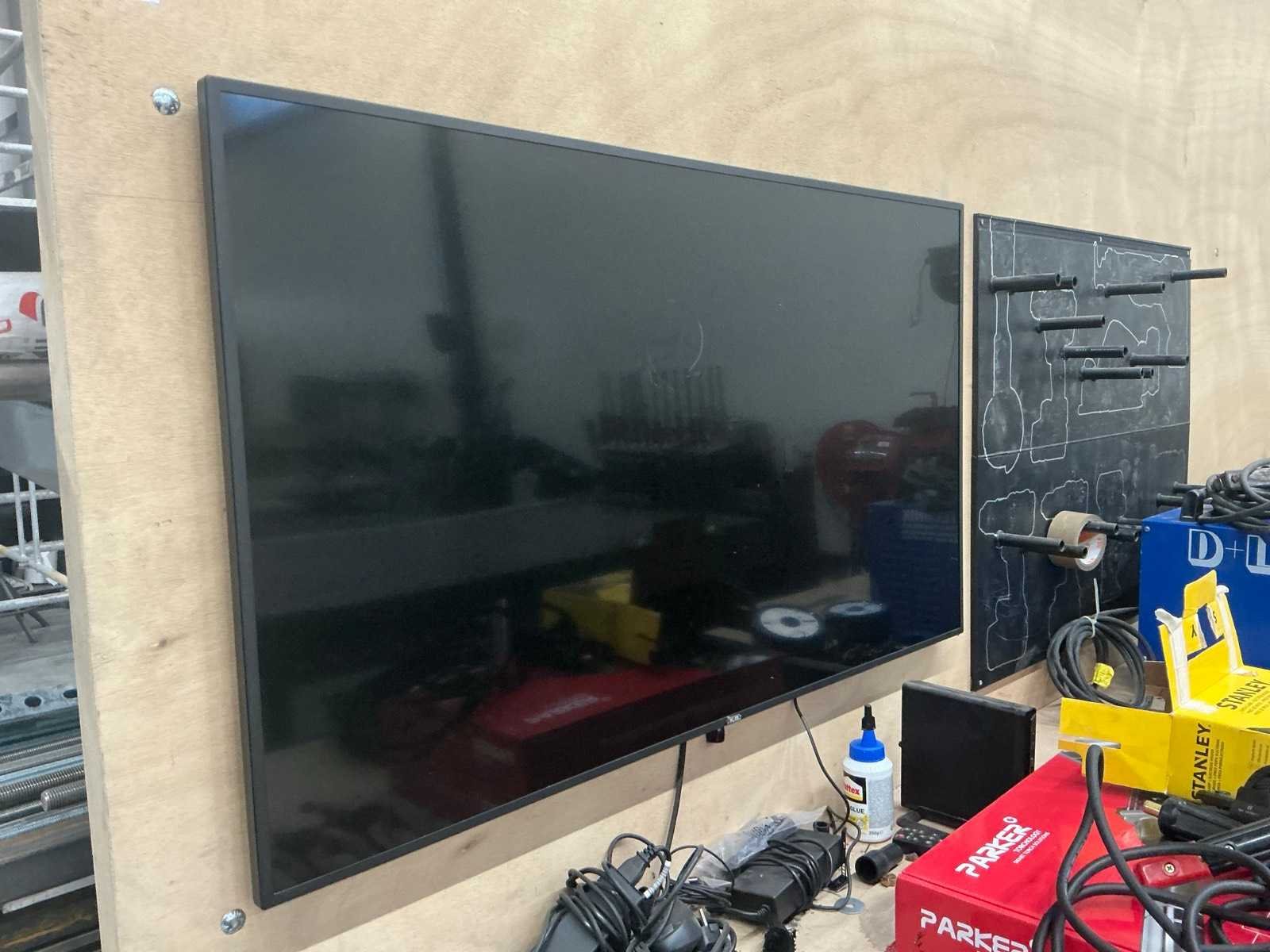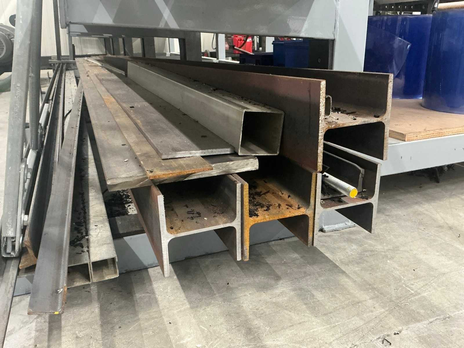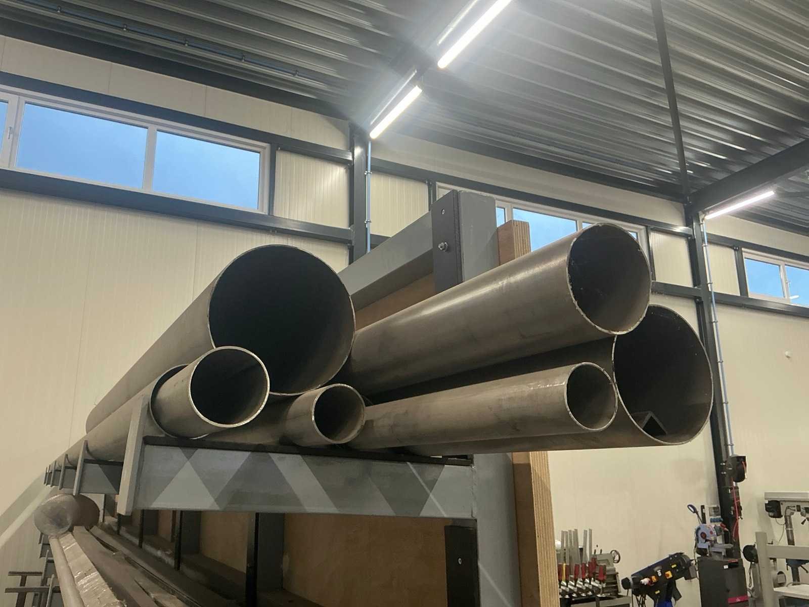 Met uitzondering van genummerde kavels. Voorzien van houten werkblad (4 cm), Iiyama monitor met mini pc en toetsenbord. Aan de achterzijde voorzien van 6-delige draagarmstelling met inhoud staal, aluminium en rvs. De werkbank is in één geheel gelast en zal als zodanig vervoerd moeten worden. Breedte: 1600mm Lengte: 6100mm Hoogte: 2500mm