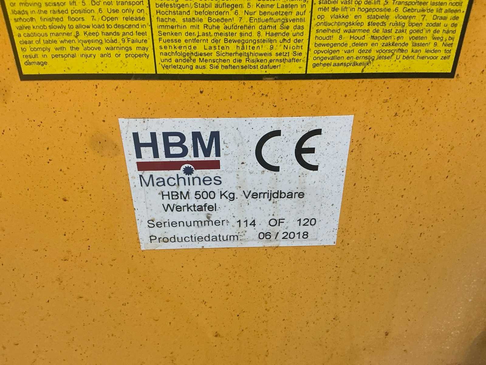 Afmeting hefplateau: 85x50 cm Merk: HBM Bouwjaar: 2018 Capaciteit.: 500kg