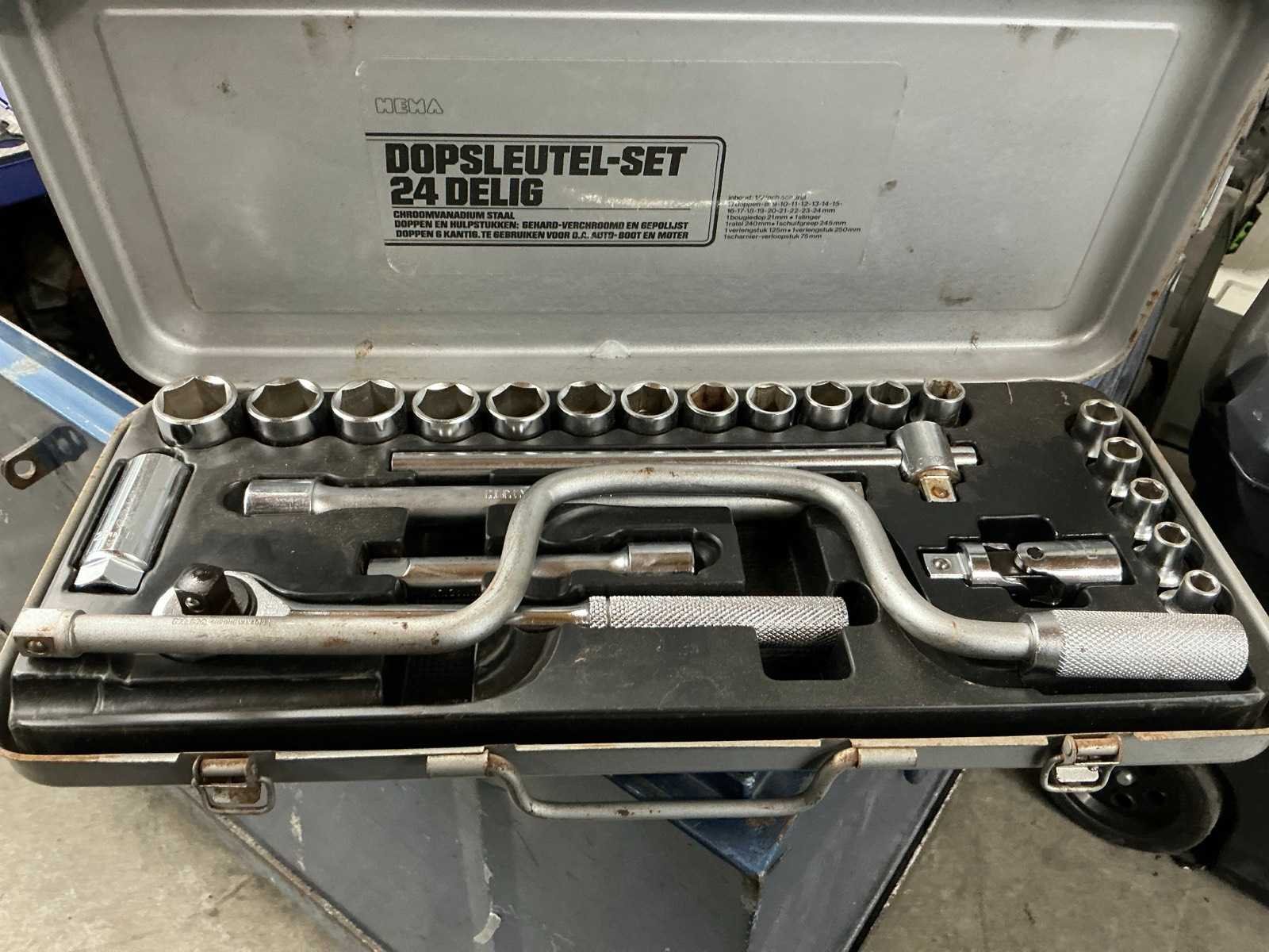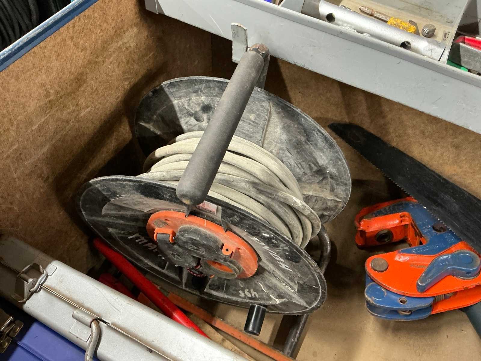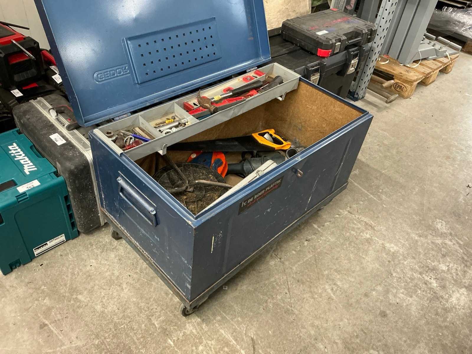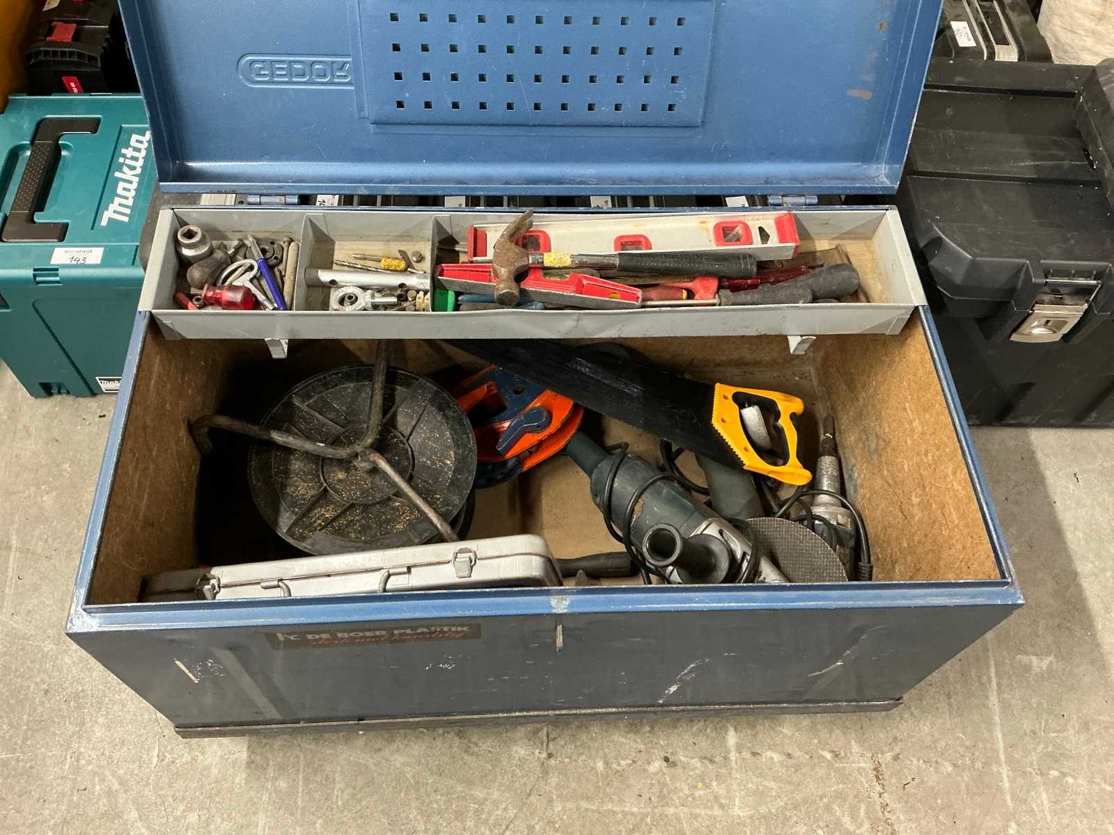 Inhoud Verlengkabelhaspel, pijptang, 2x haakse slijper, 1x rechte slijper, platenklem, 2x doppenset etc Merk: Gedore Metaal: true Met inhoud: true Afmeting l: 910mm Afmeting b: 530mm Afmeting h: 570mm