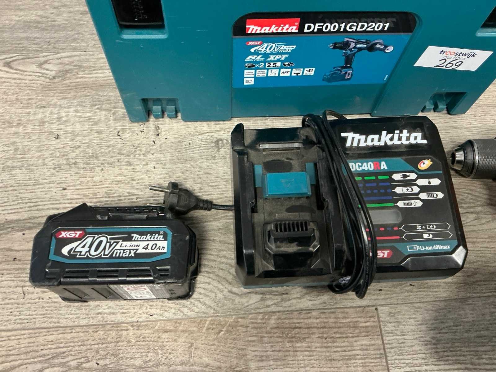 Merk: Makita Type: DF001G Bouwjaar: 2020 Accuspanning: 40V Aantal accu's: 2 Accu lader: true Met koffer: true