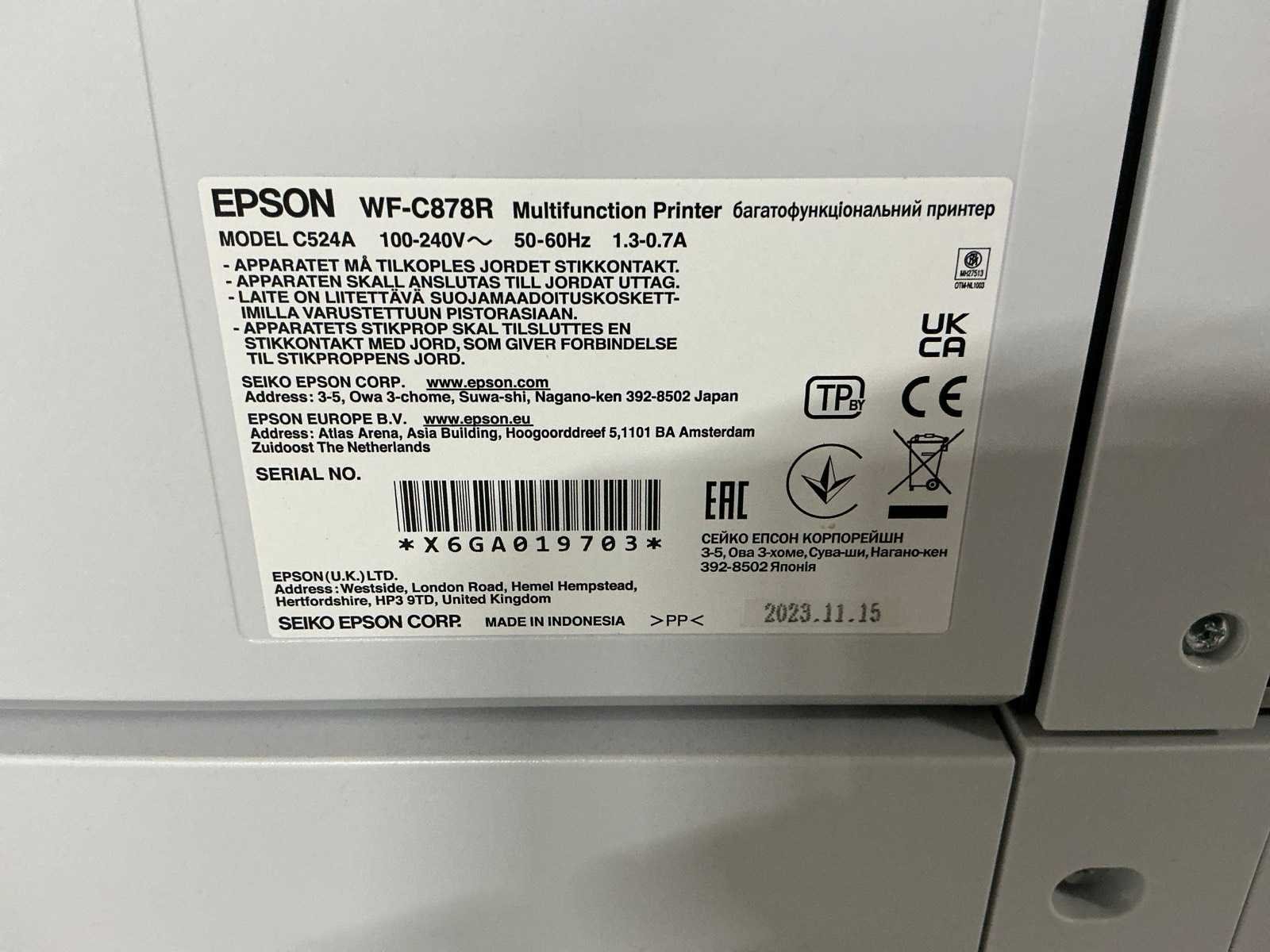 Merk: Epson Model: Workforce Pro WF-C 878R