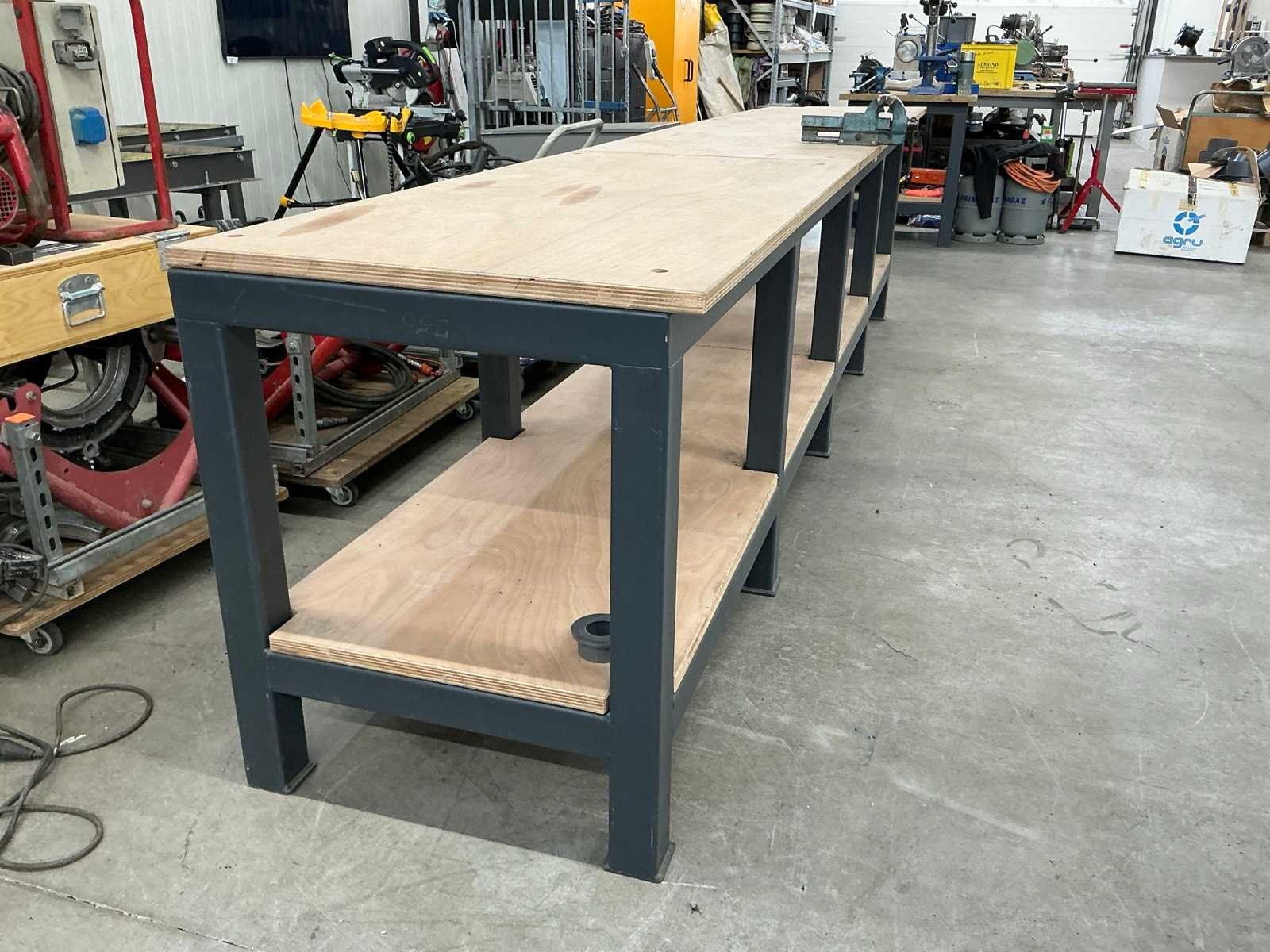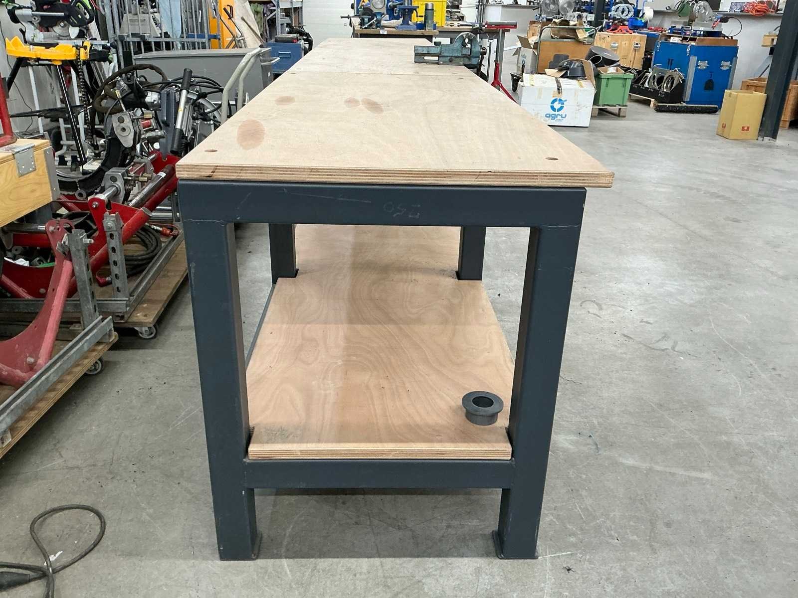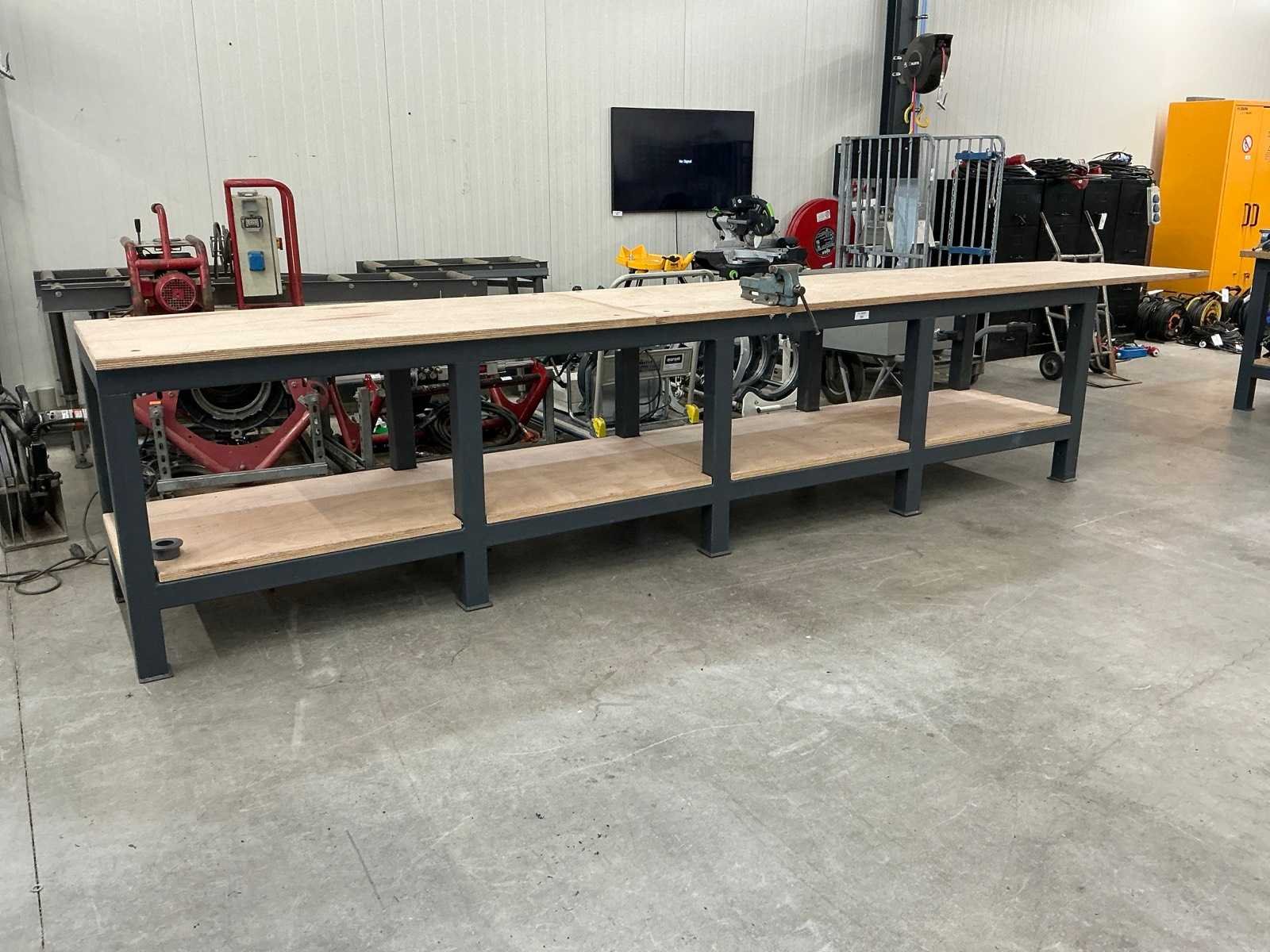 Voorzien van Heuer Front bankschroef. Dikte werkblad: 3 cm. Het stalen frame is in één geheel gelast. Breedte: 800mm Lengte: 4800mm Hoogte: 940mm